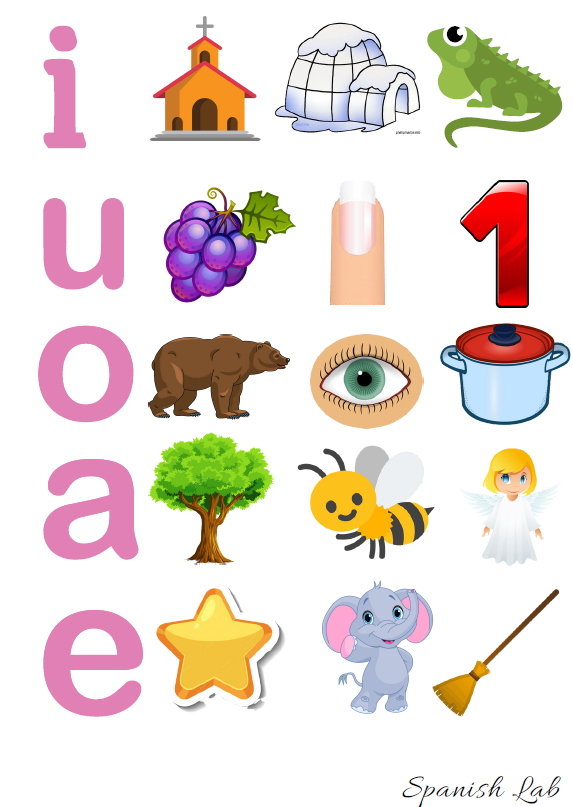 - Presentación de las 5 vocales en español: a, e, i, o, u