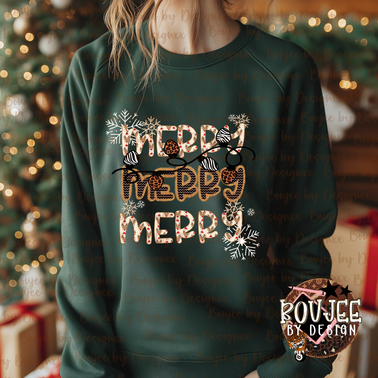 Bring the Boujee Christmas vibes to life with this bold and trendy “Merry” layered PNG design featuring a mix of reindeer print, leopard spots, zebra stripes, glitter gold accents, and delicate snowflakes ❄️