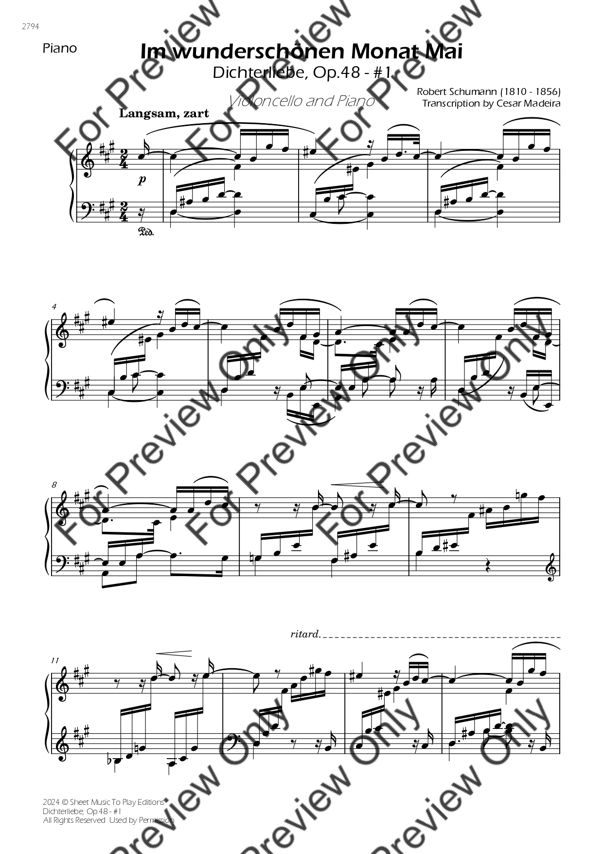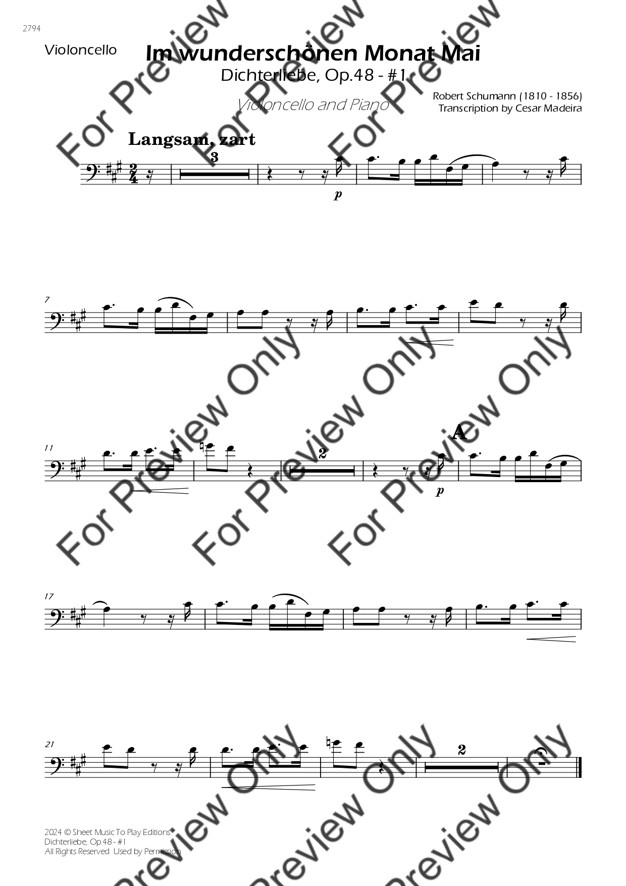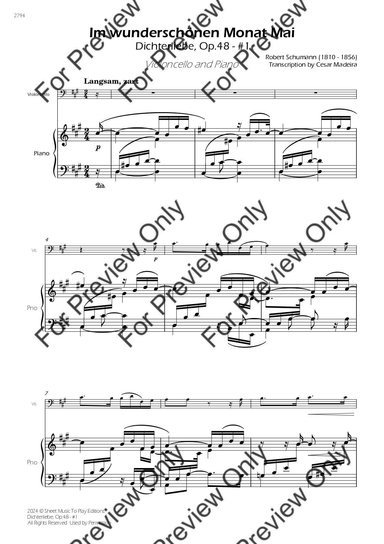 Dichterliebe No.1, Op.48 by Robert Schumann. Arrangement for Violoncello and Piano. With Full Score and Individual Parts. Have fun!