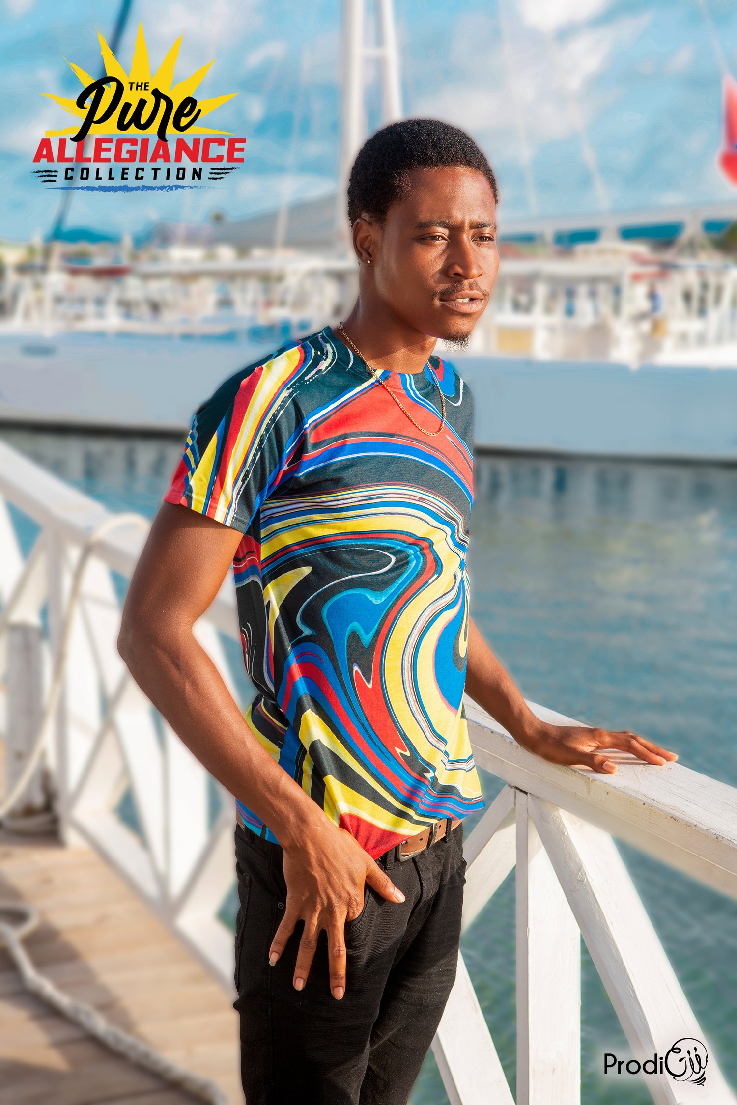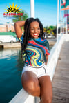 Watch mix up! D'Perfect Mixture Full Coverage Tee swirls the beautiful and symbolic colours of the Antigua & Barbuda flag into a bold all-over print, across wrinkle-free, fade-resistant polyester. The colors move like brushstrokes — vivid, bold, and permanent.