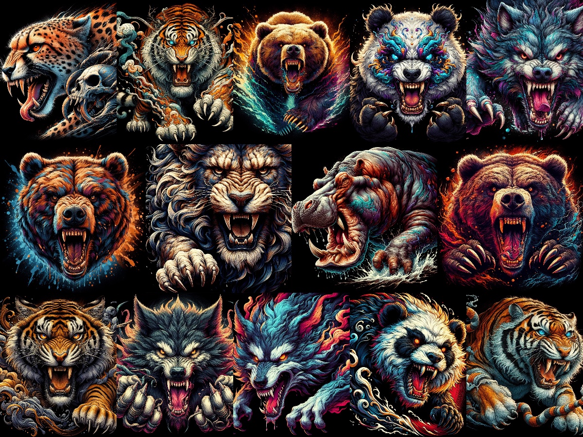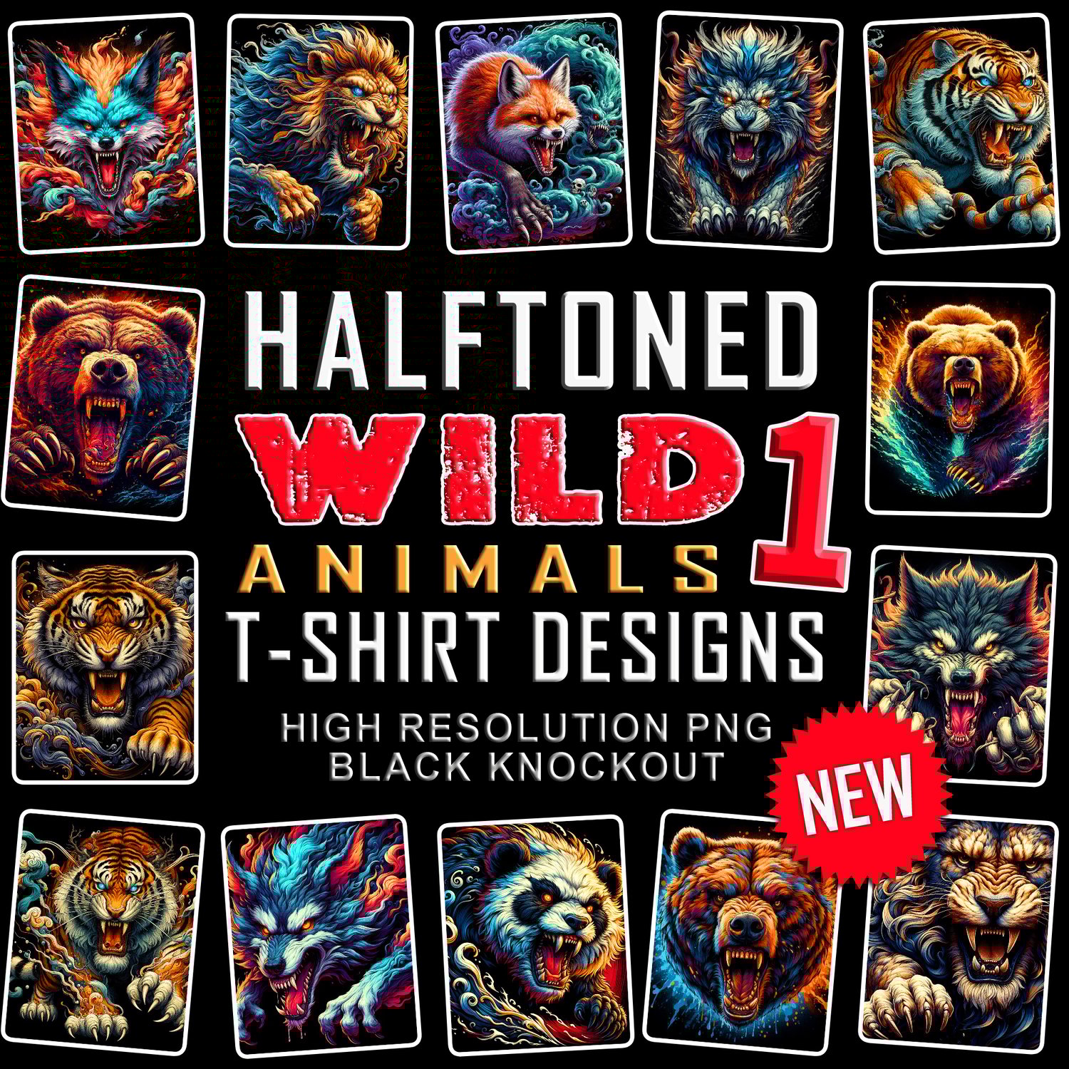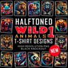 27 Halftoned Wild Safari Animals prints tshirt designs bundle for DTF DTG, jungle animals designs instant download for commercial use