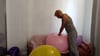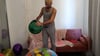 After that he burst all the balloons in the room. He don't need anything to burst them he only use his hands.
