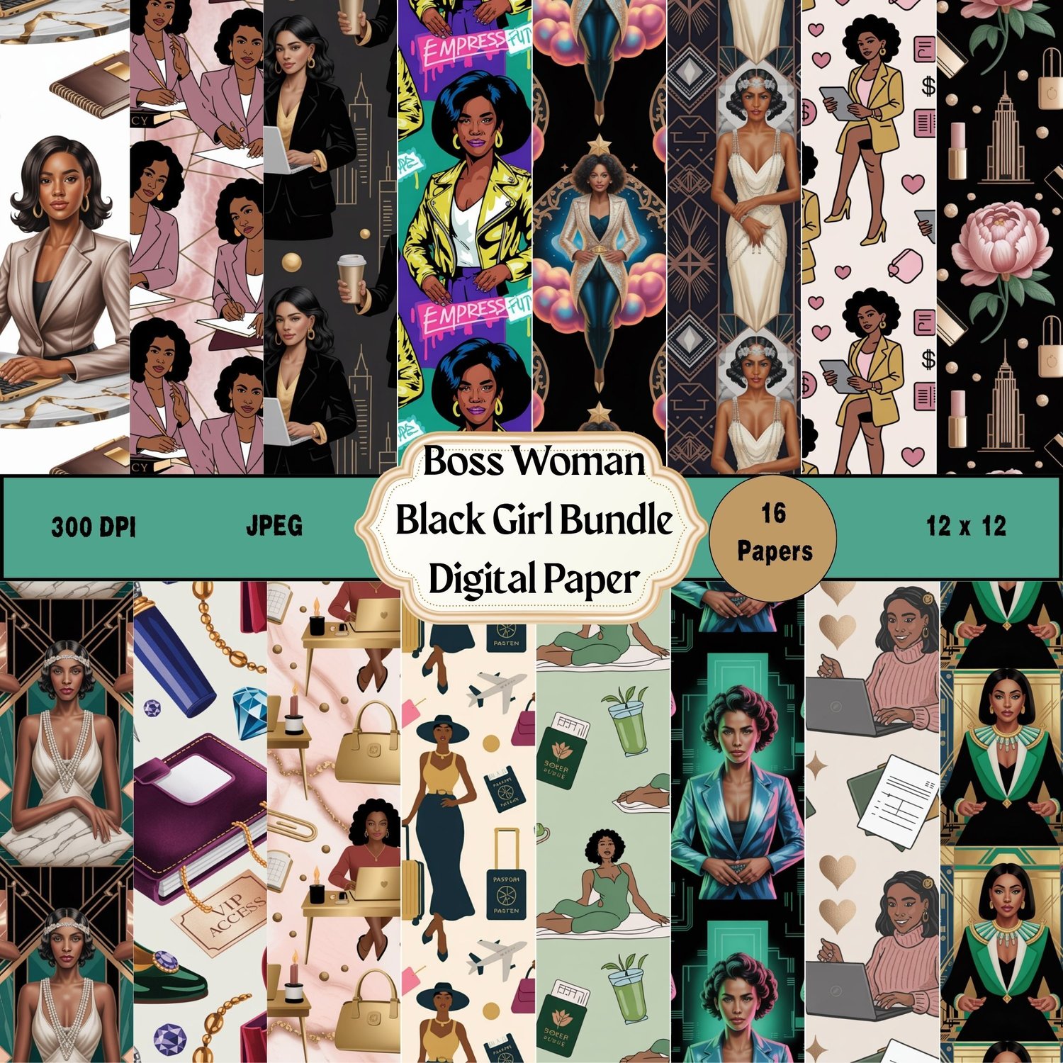 ✨ Boss Woman Black Girl Bundle: Digital Paper Collection (16 Sheets) 👑