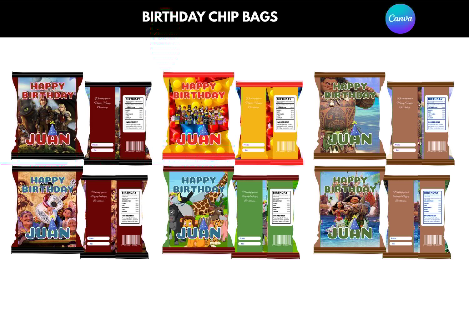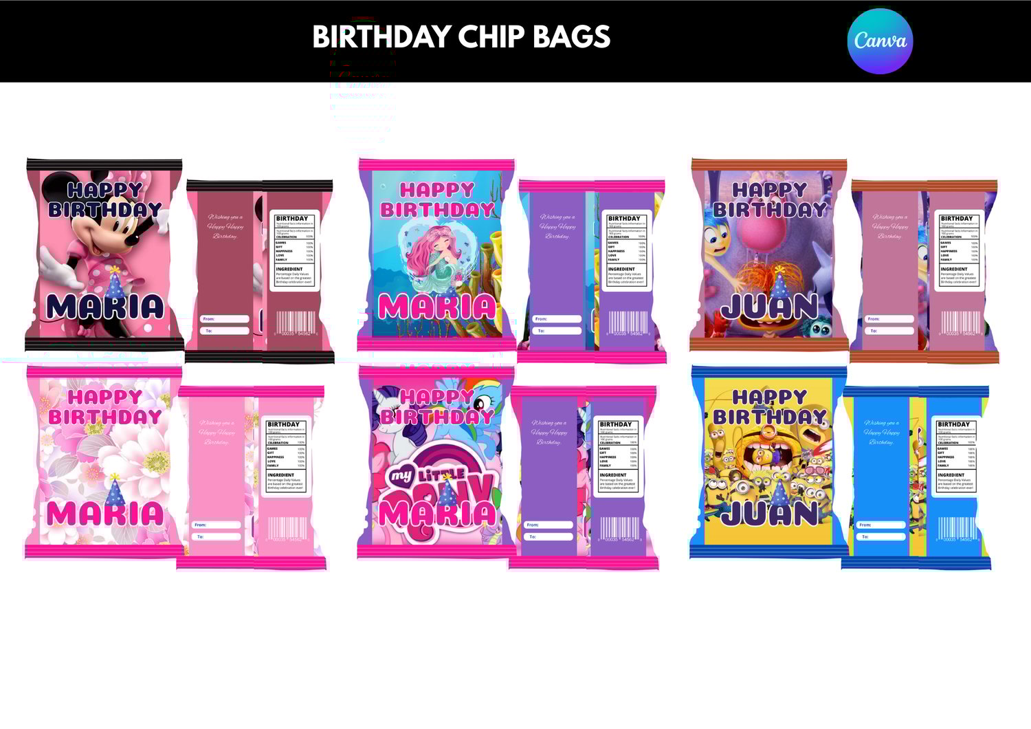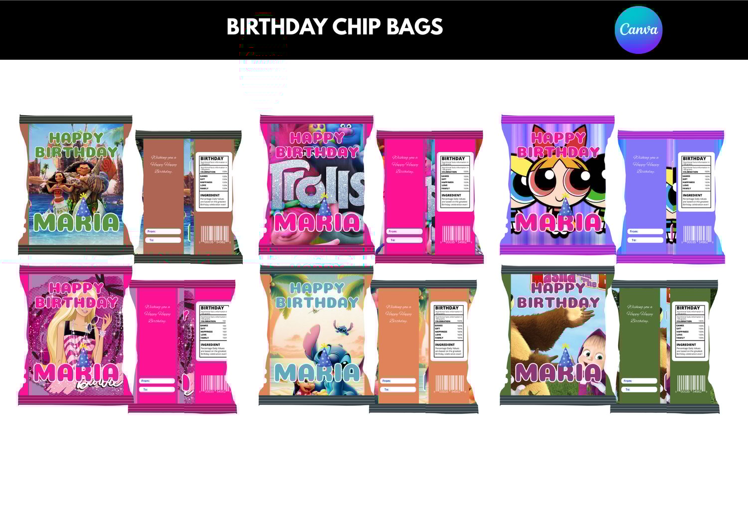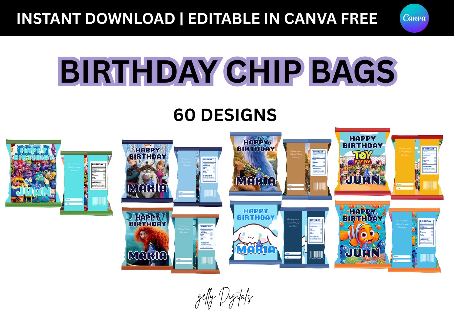 Get 60 Editable Birthday Chip Bag Templates — Perfect for ANY party theme! 🎈