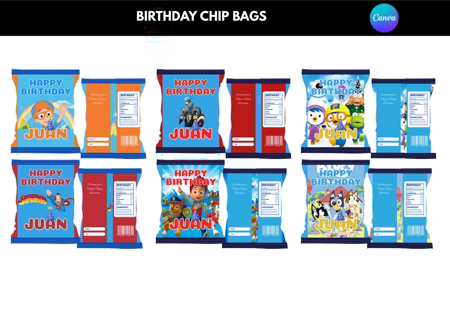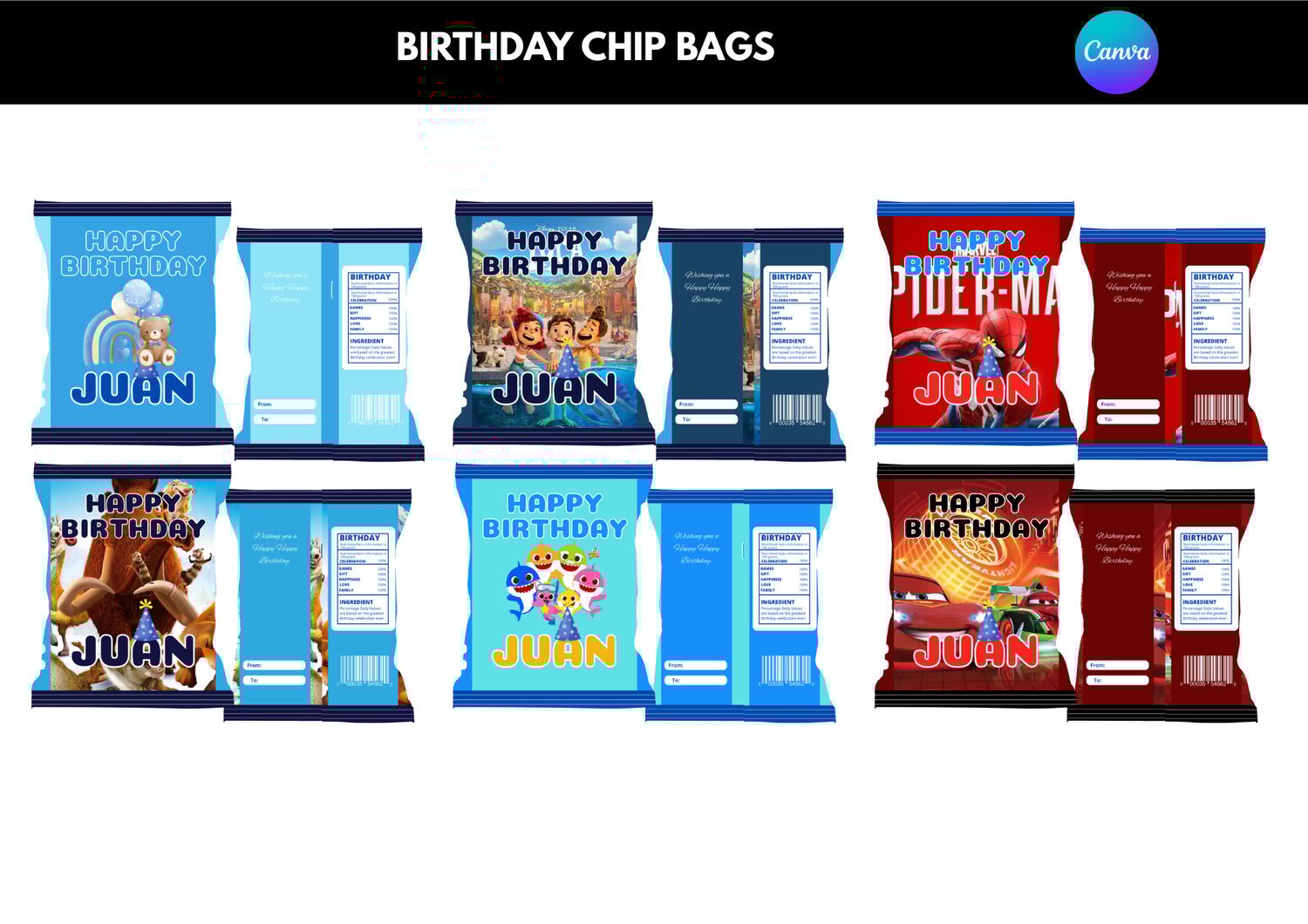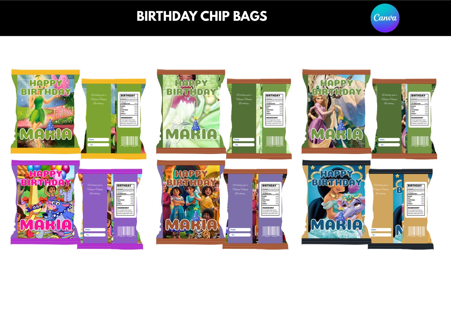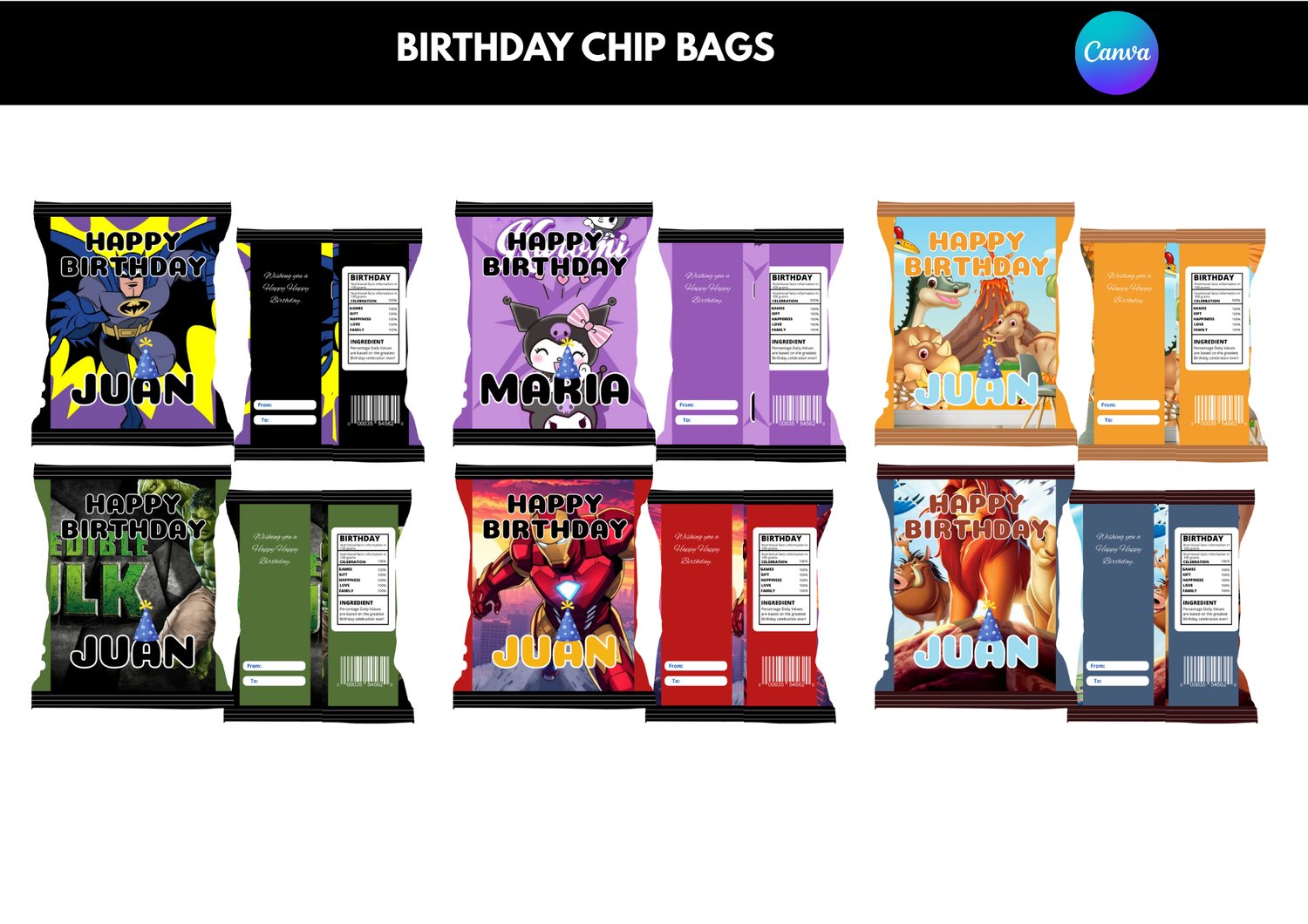 Get 60 Editable Birthday Chip Bag Templates — Perfect for ANY party theme! 🎈
