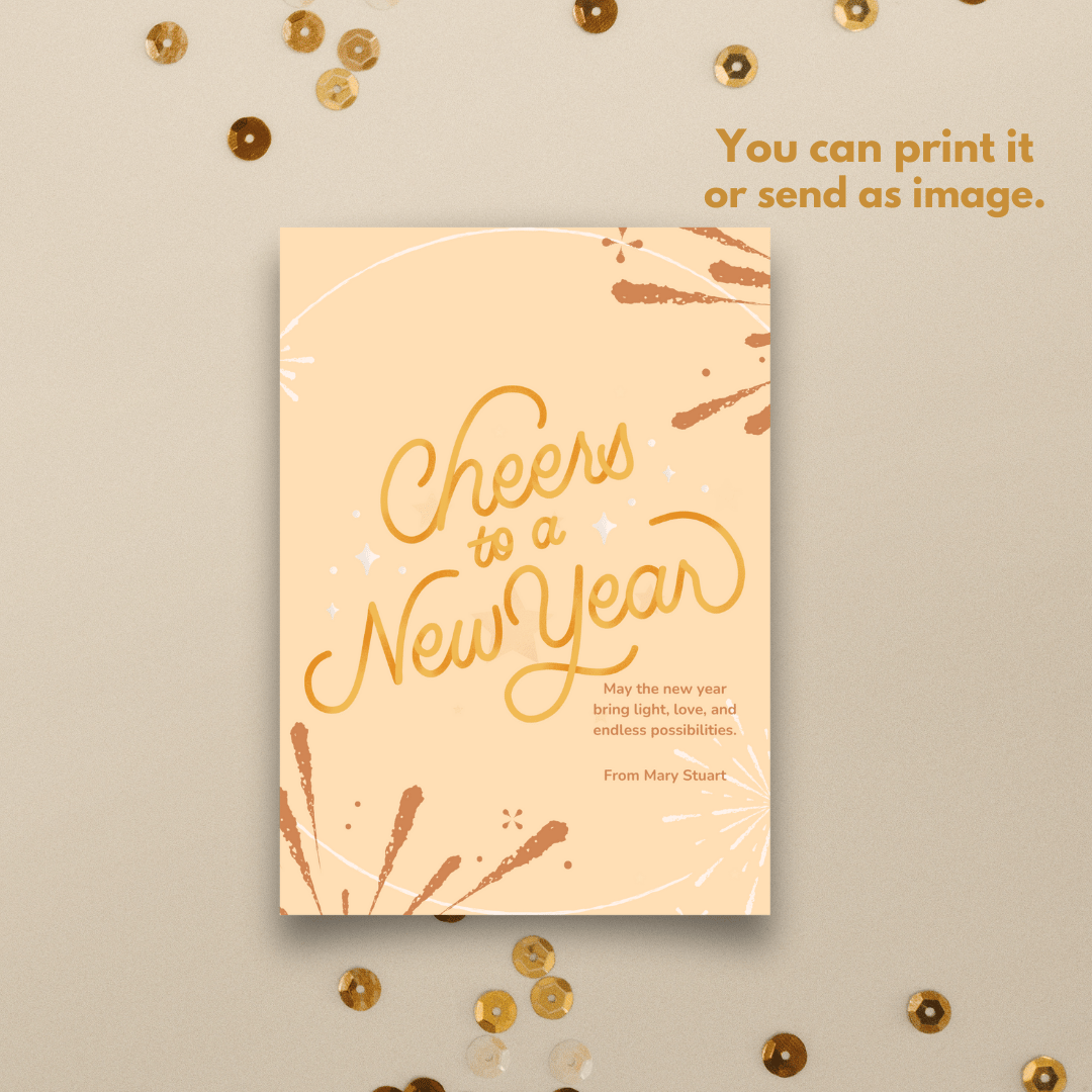 The playful lettering and festive sparkle elements make it ideal for New Year parties, thoughtful gifts, or printable decorations. Whether you're tech-savvy or new to design, you'll love how easy it is to personalize—no design experience needed! Adjust the editable text to include your own message, then save and share your creation.