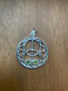 Durchmesser 28 mm, Anhänger in 925er Sterling Silber, mit zwei Peridot-Edelsteinen 3 mm