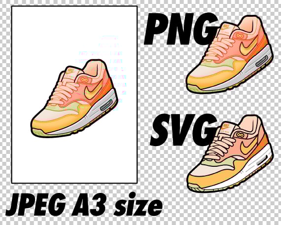 Digital Sneaker Art downloadable files in JPEG, PNG, SVG.
