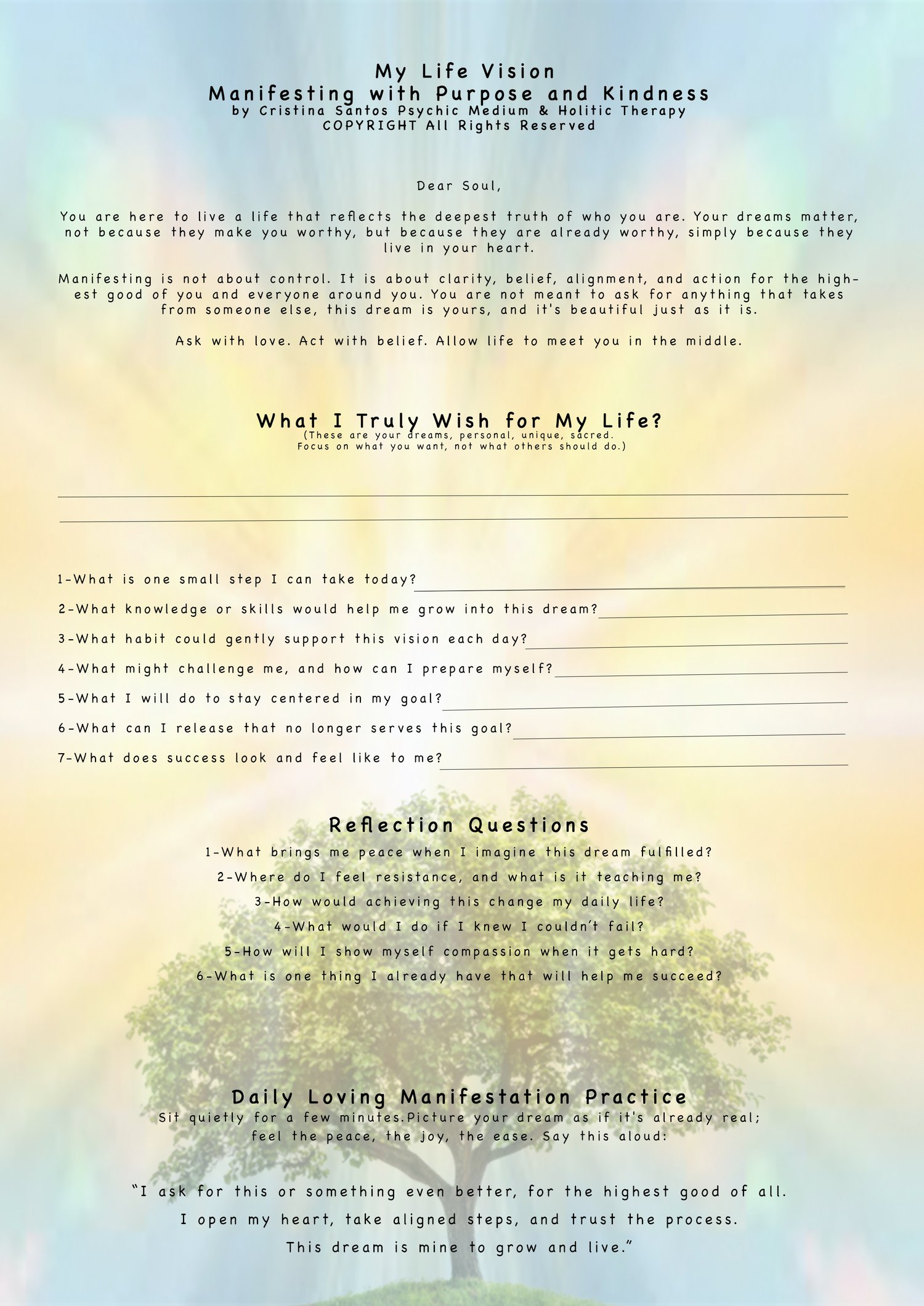 This printable guide was created with intention, love, and spiritual alignment to help you connect deeply with your soul's desires and take inspired steps forward.