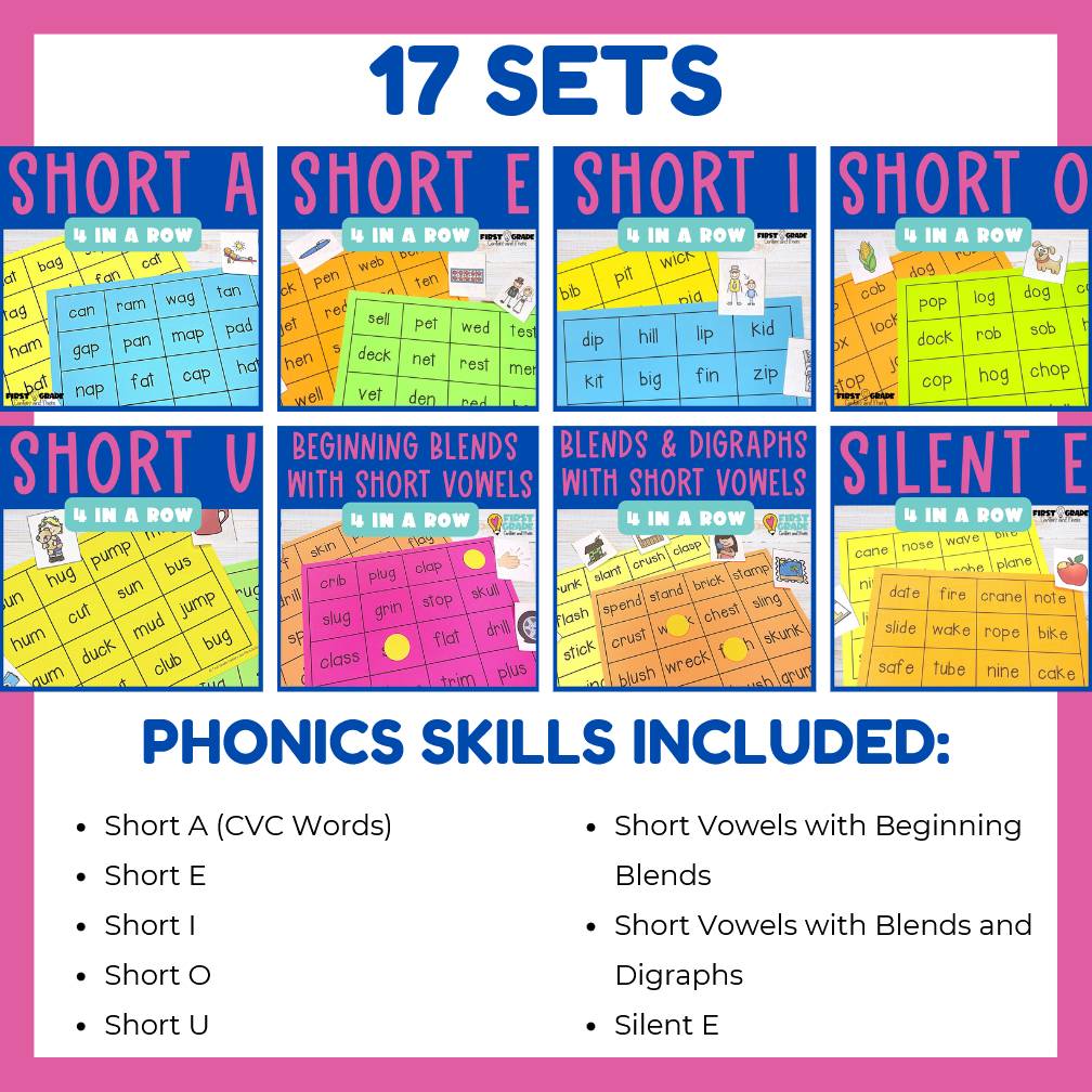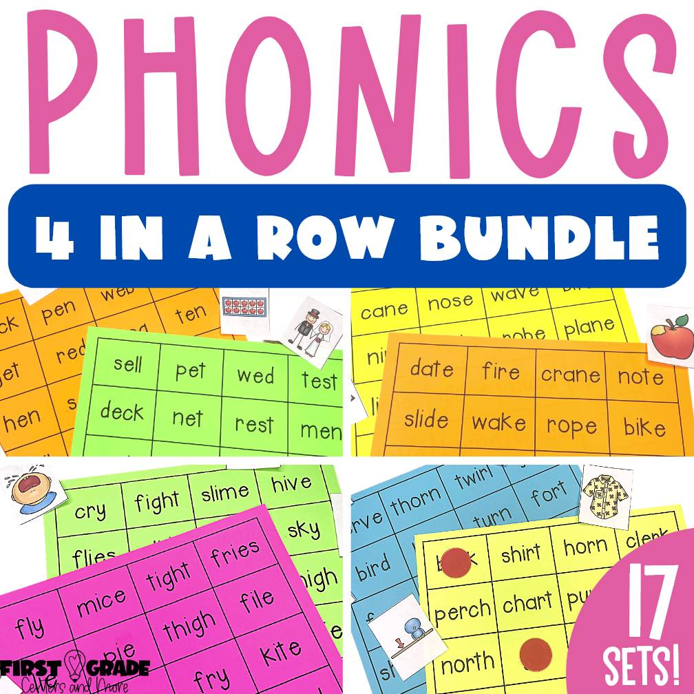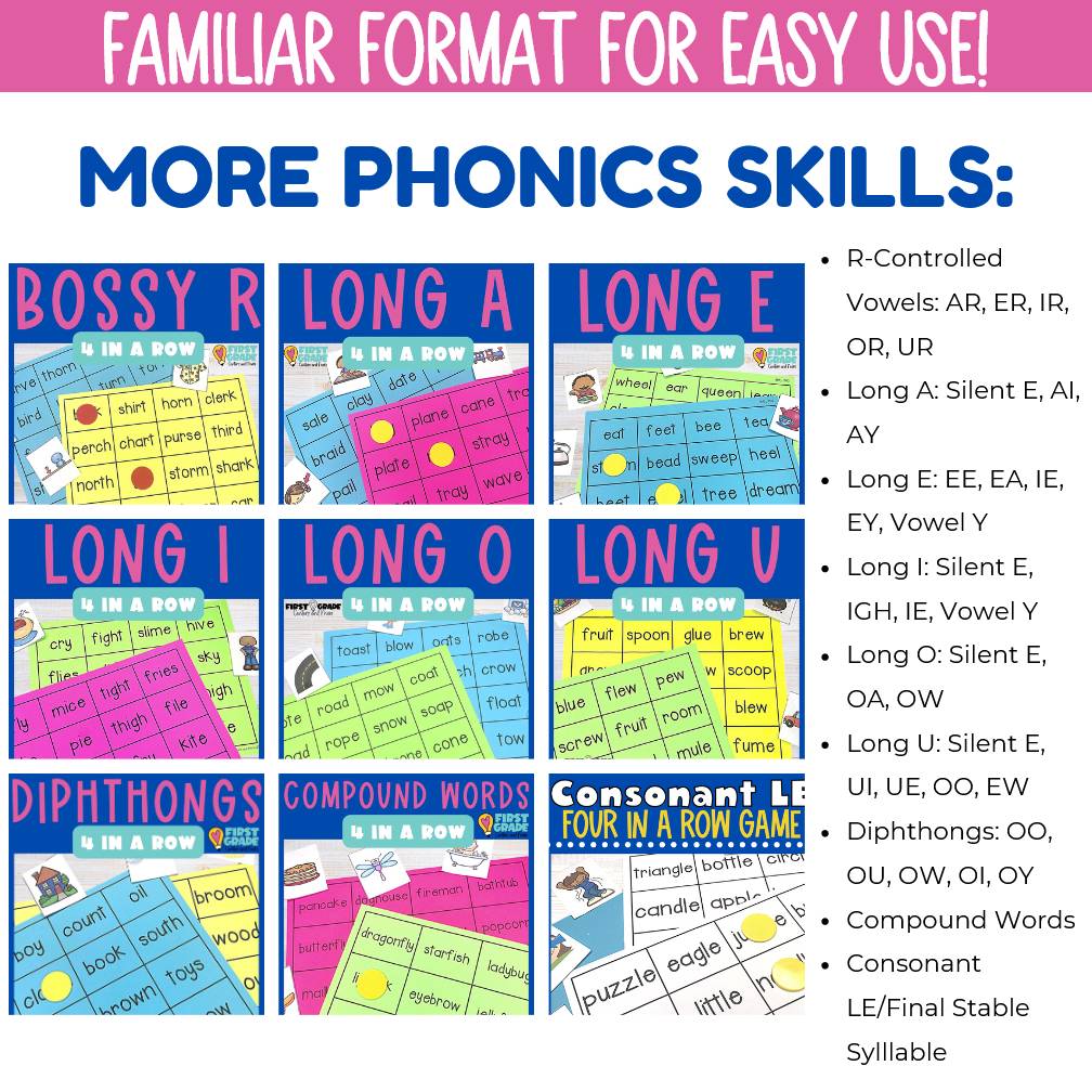 1st grade Phonics Games Bundle - 4 In A Row Decodable Center
