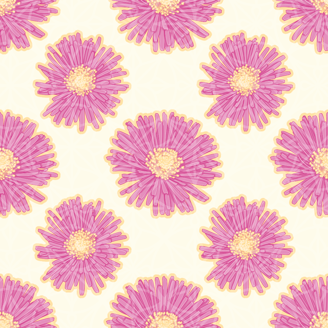 Sour Fig flowers vector repeat pattern. Thin petal blossoms seamless illustration background.