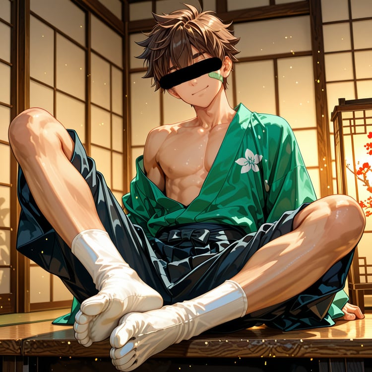 日本の正月をテーマに、着物を着用している男性を、キャラクターごとにお任せ作成しました。男らしいキャラクターの魅力を思い切って表現しました。