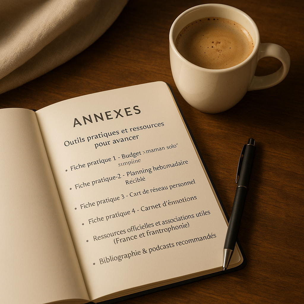 - Fiches pratiques (budget, planning, réseau, émotions)