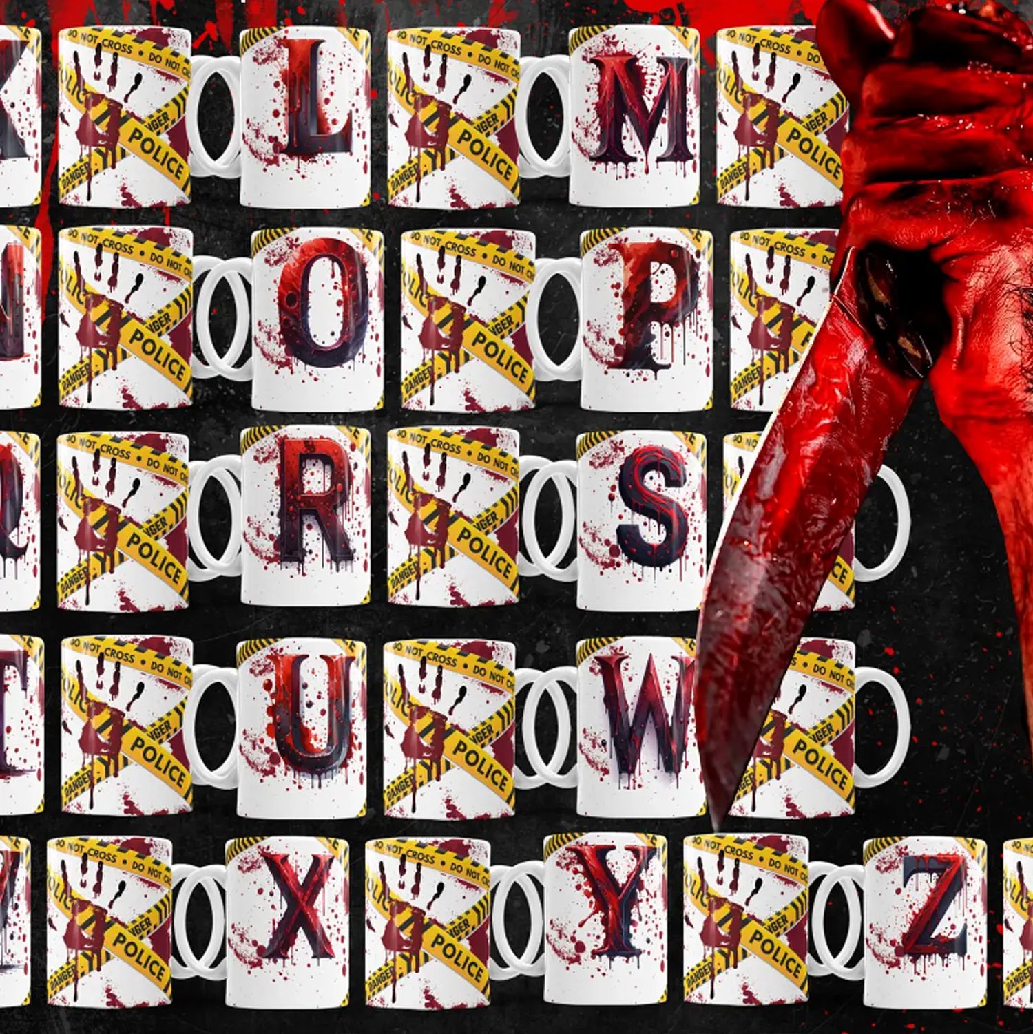 26 Artes para Caneca Alfabeto Sangue Arquivo Editável