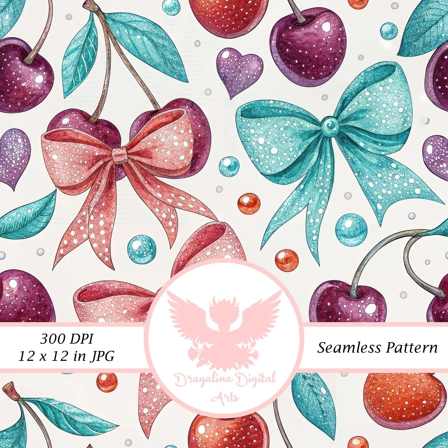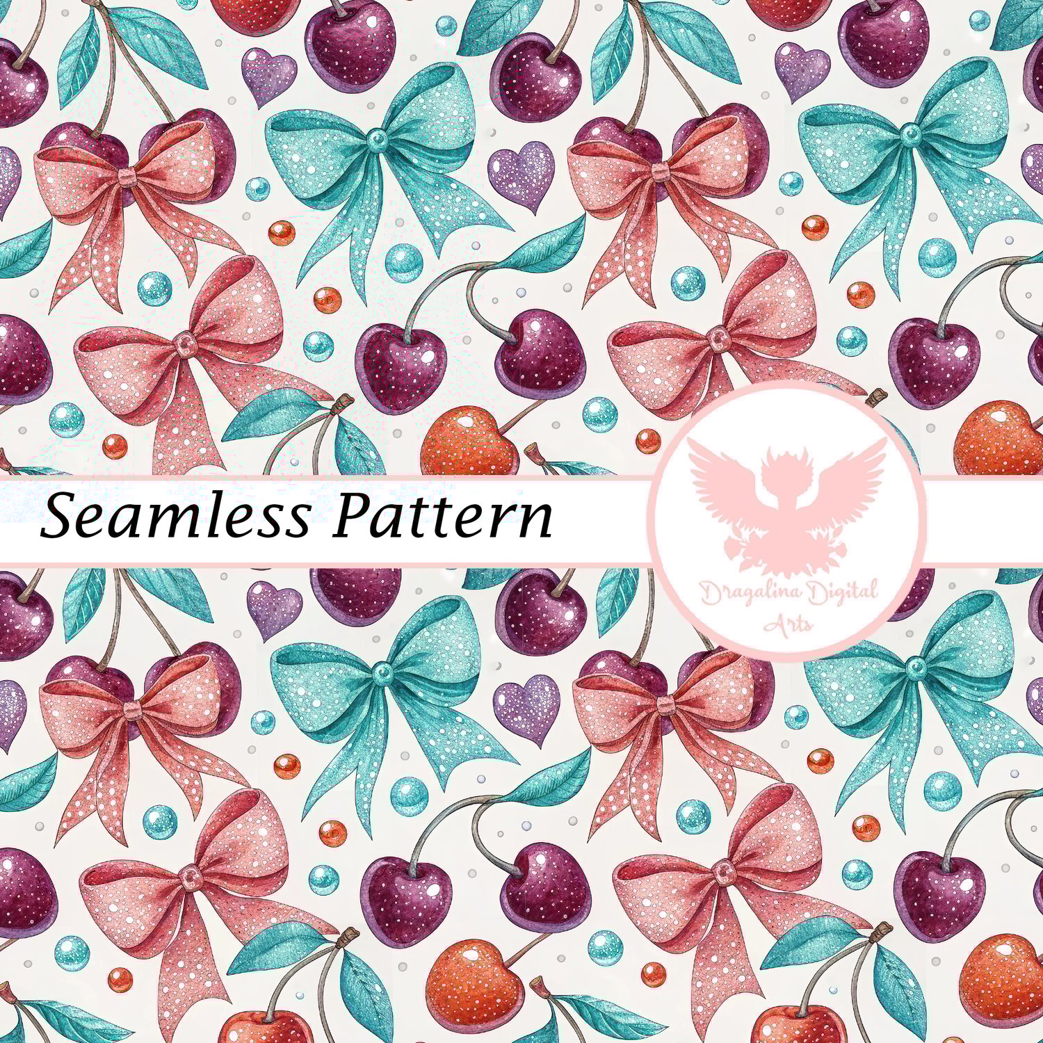 Cherry Bows & Dots Seamless Pattern