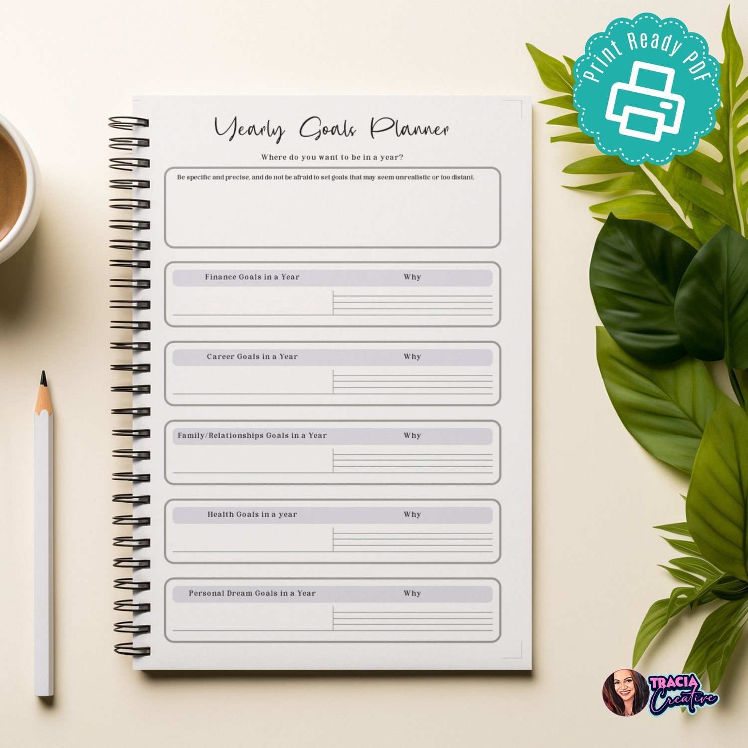 Unlock your full potential with our Yearly Goals Planner. Designed to help you stay organized and focused, this comprehensive planner empowers you to achieve success in all areas of life.