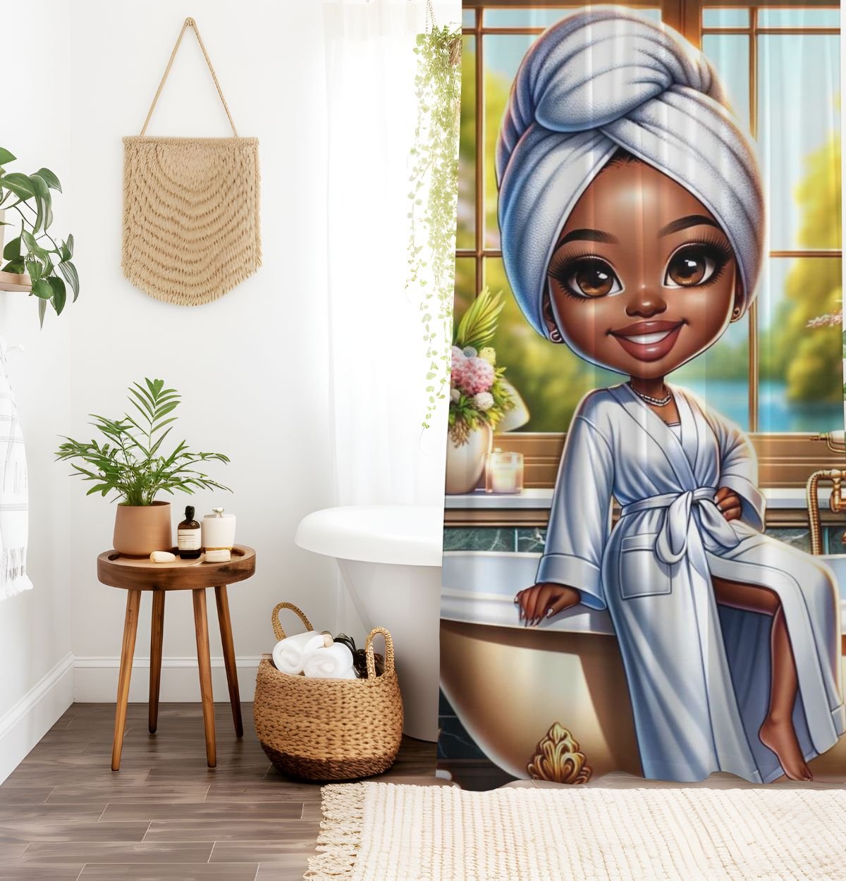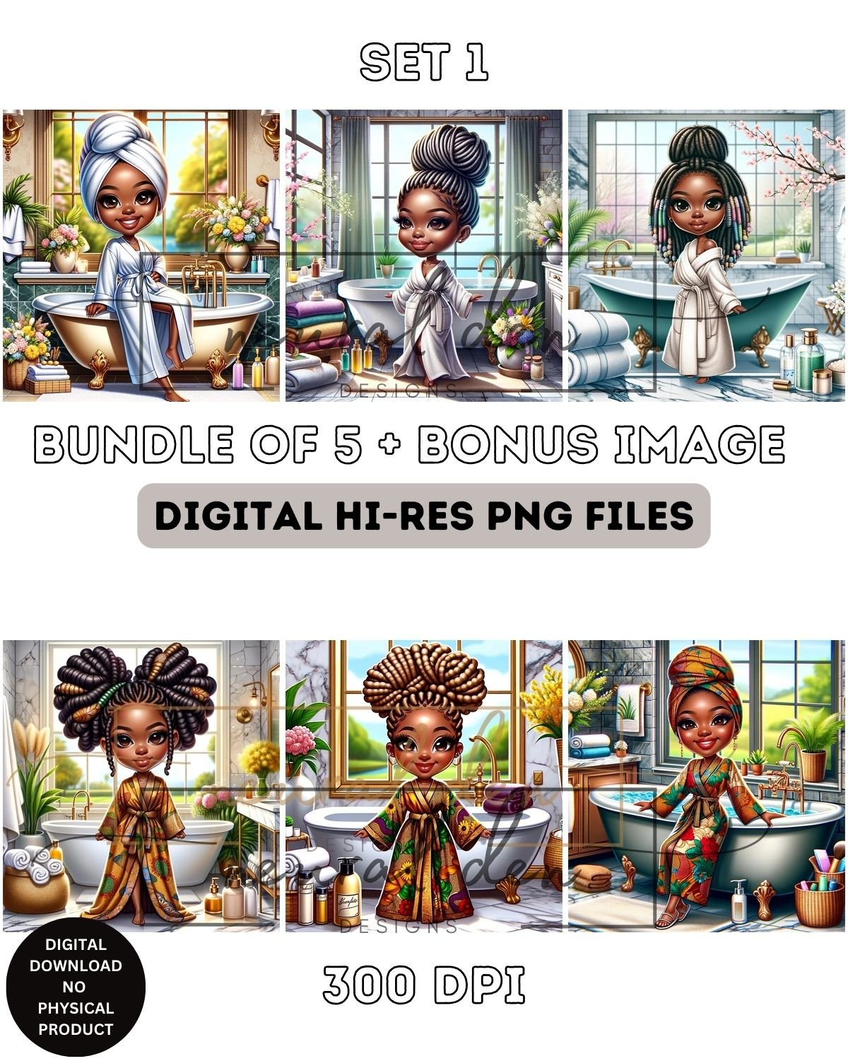 Spring Bathroom Chibi African Woman Digital Images - Set 1