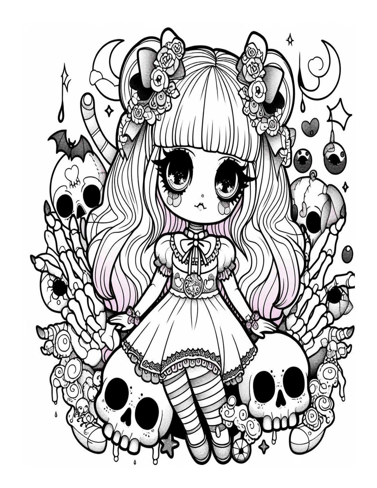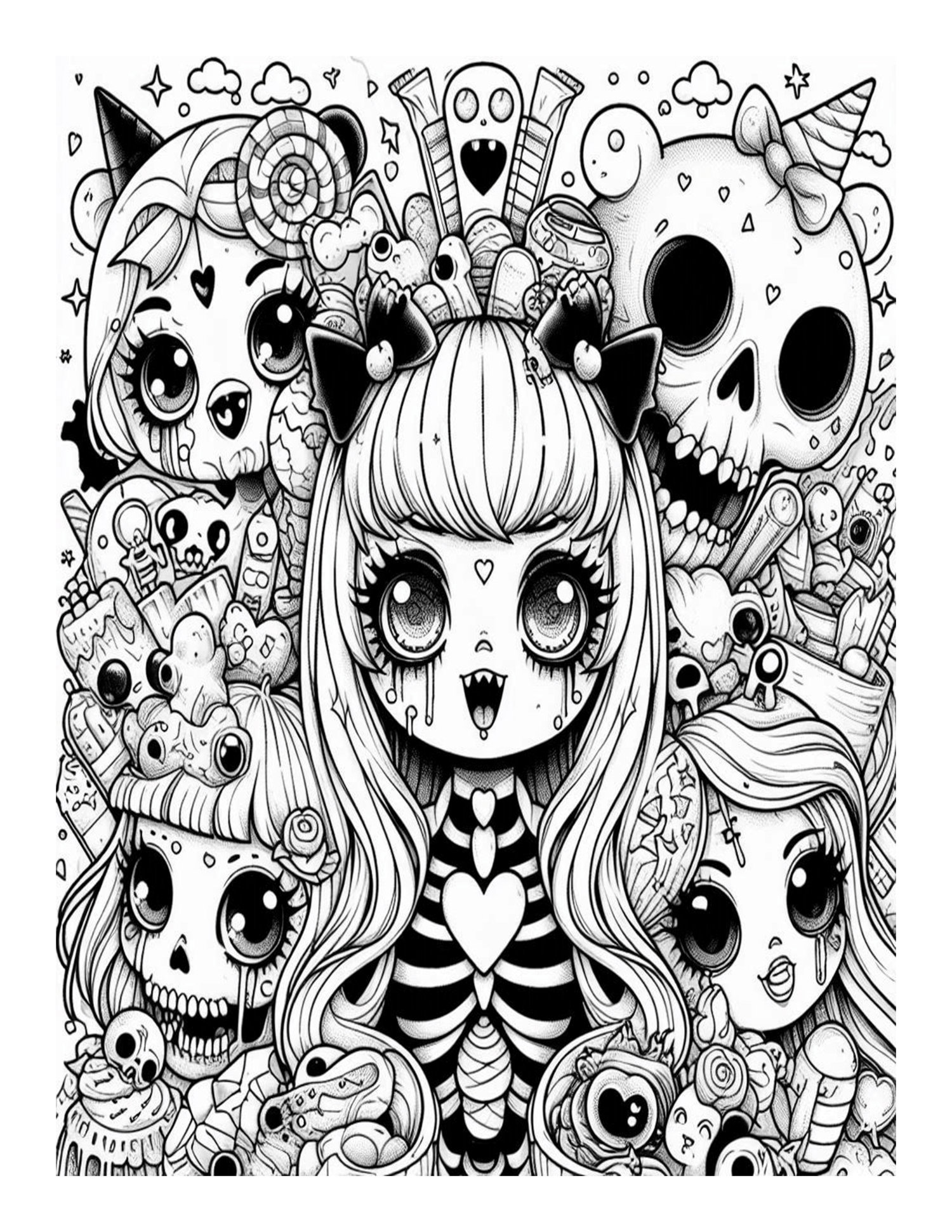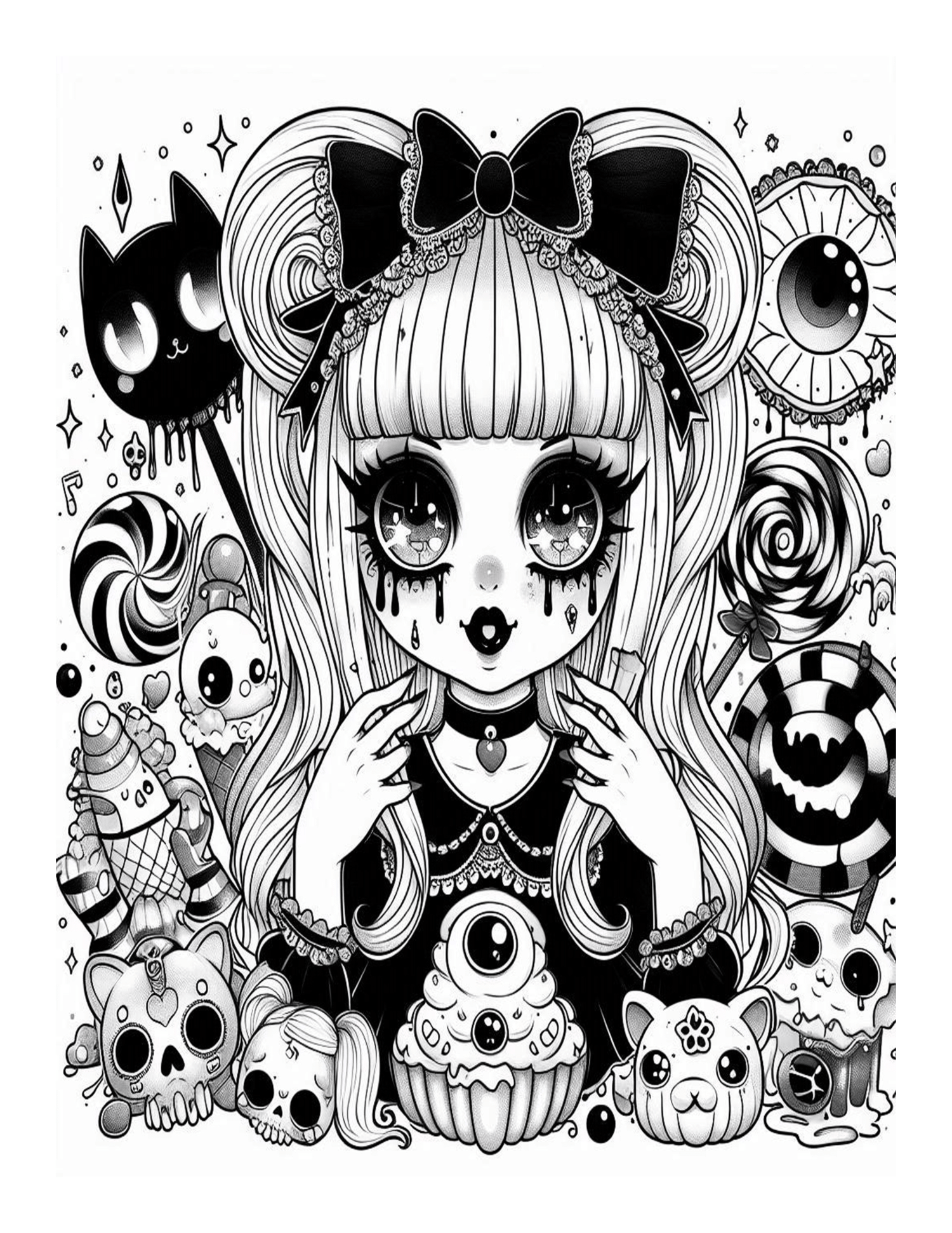 Creepy kawaii pastel goth Coloring pages for Adults to enjoy Coloring for Stress Relief