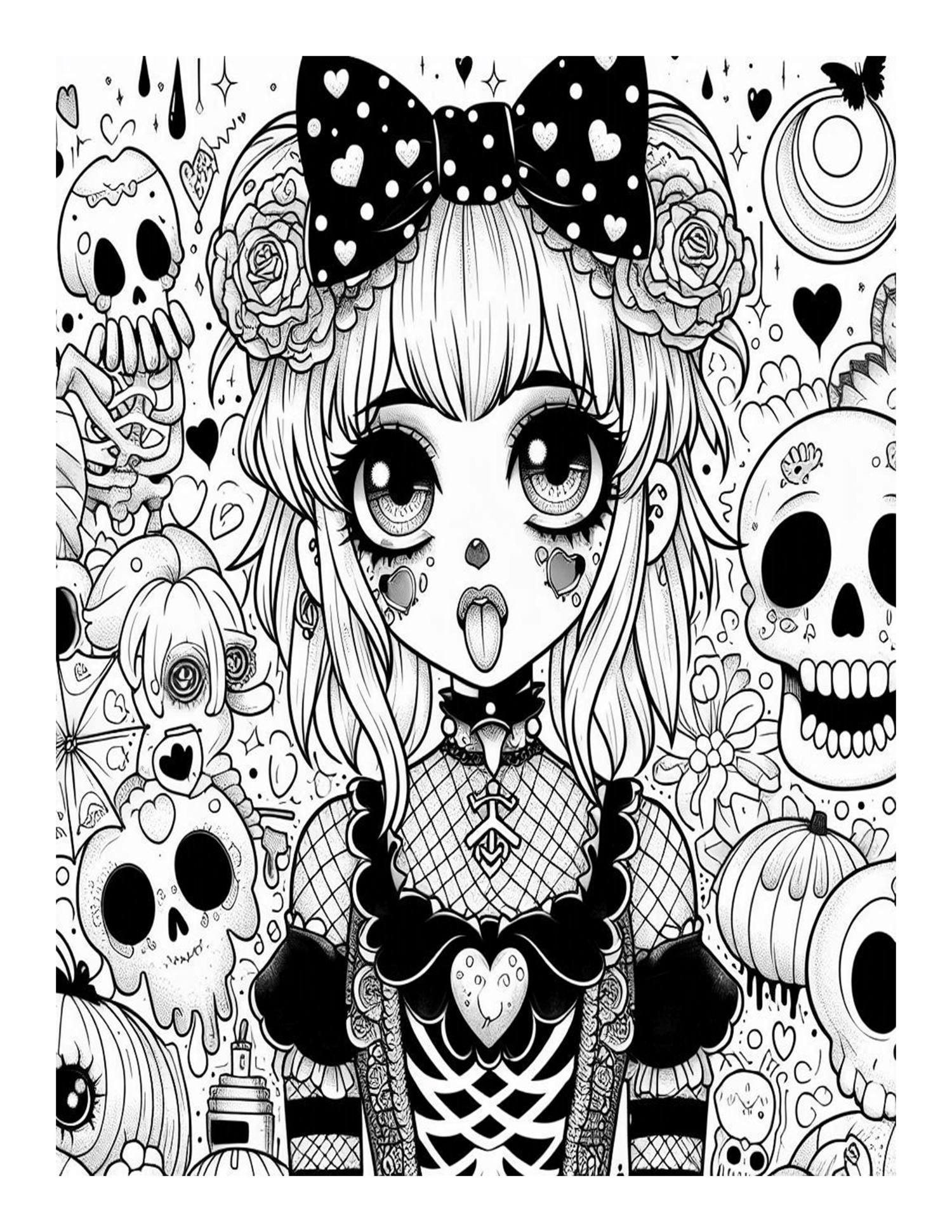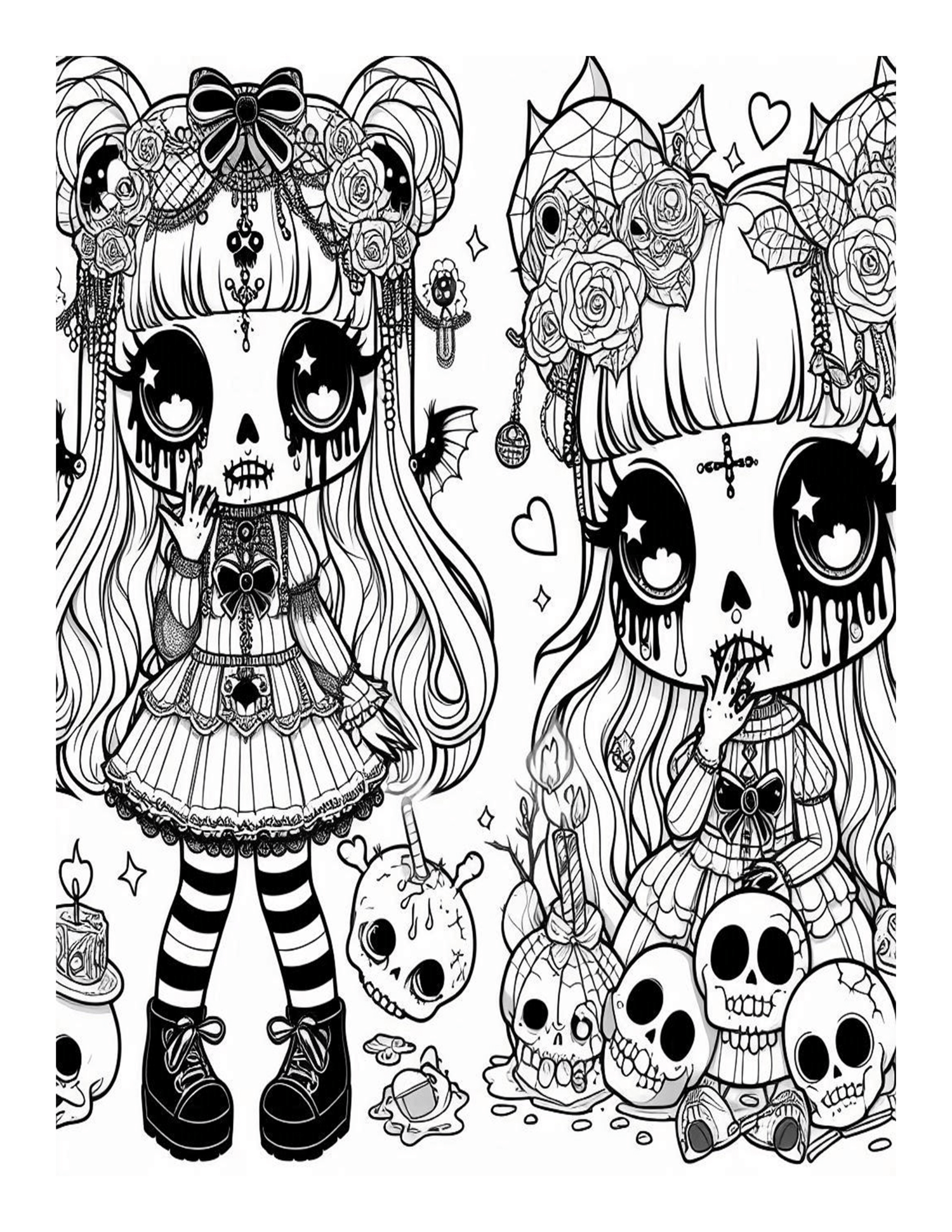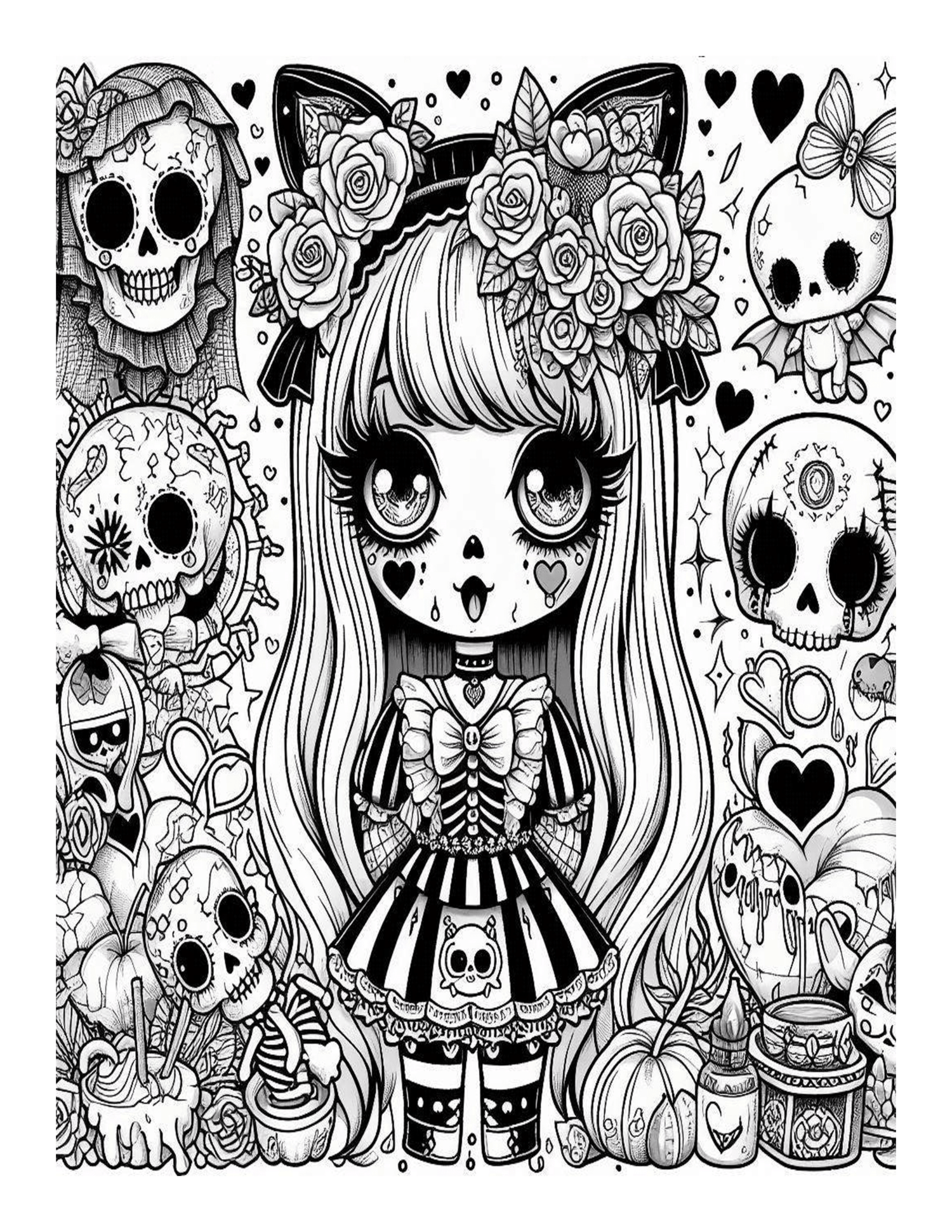 Creepy kawaii pastel goth Coloring pages for Adults to enjoy Coloring for Stress Relief