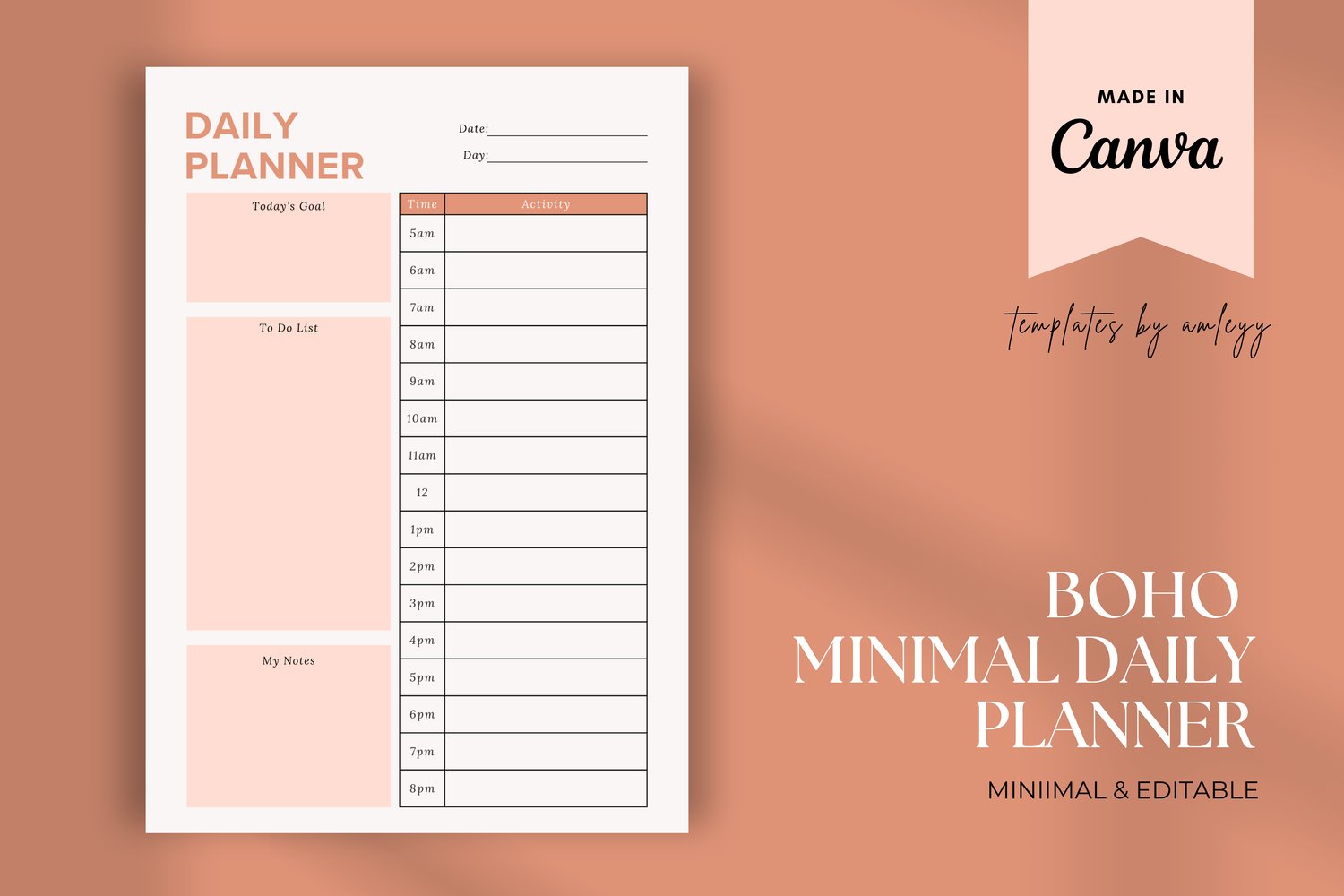 Boho Minimal Daily Planner | Aesthetic Daily Schedule Template | Printable & Digital Planner | Editable Canva Template | Daily To-Do List