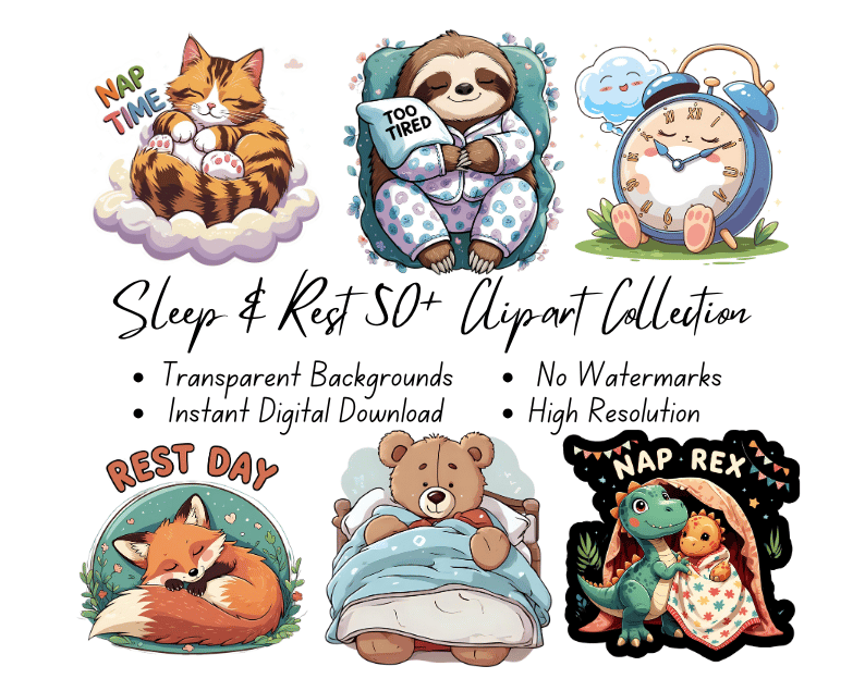 Sleep & Rest 50+ Clipart Collection | High-Resolution Digital Printables | Instant Download | No Watermark