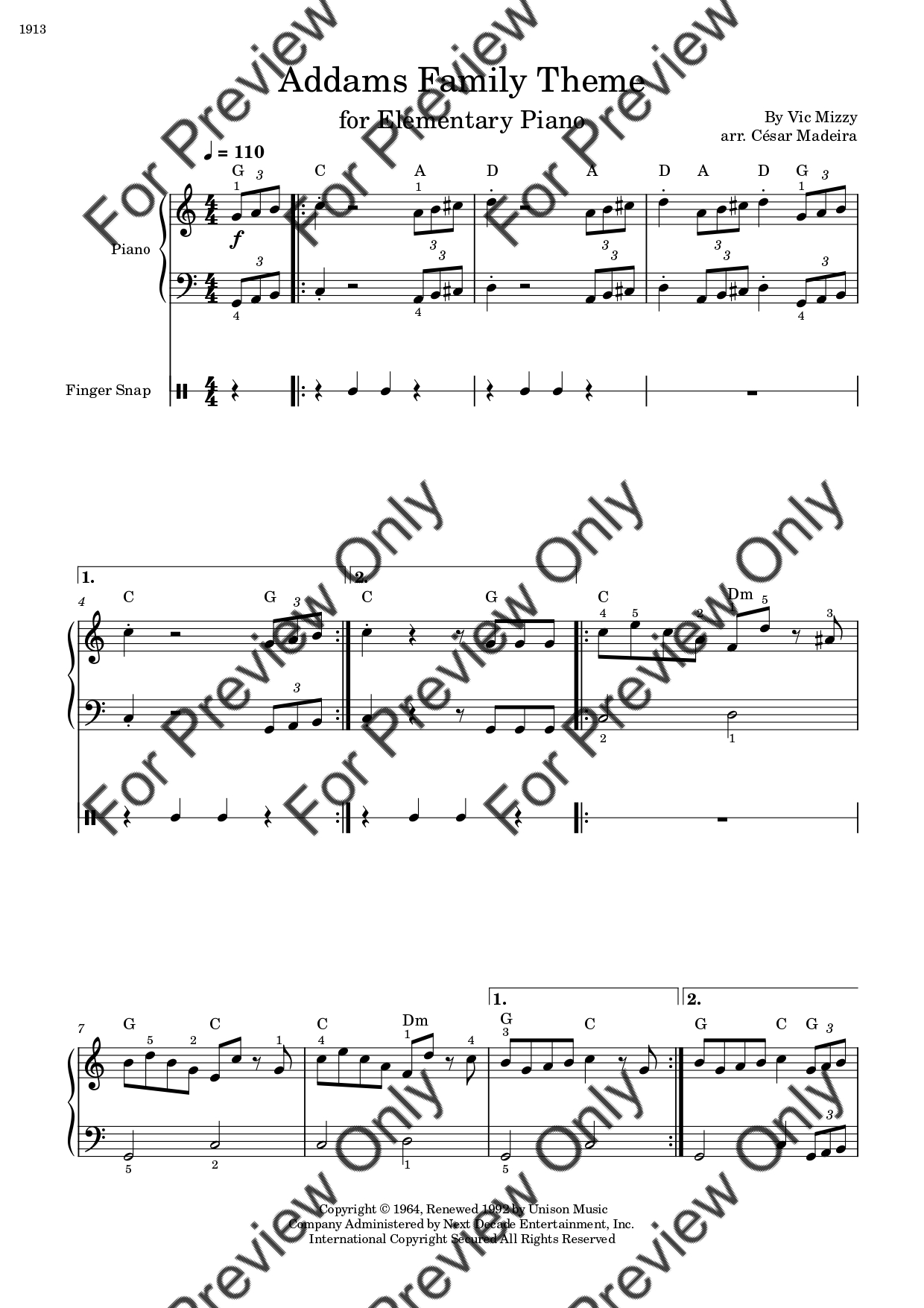 Addams Family Theme. Arrangement for Elementary/Very Easy Piano. With Full Score. Have fun!
