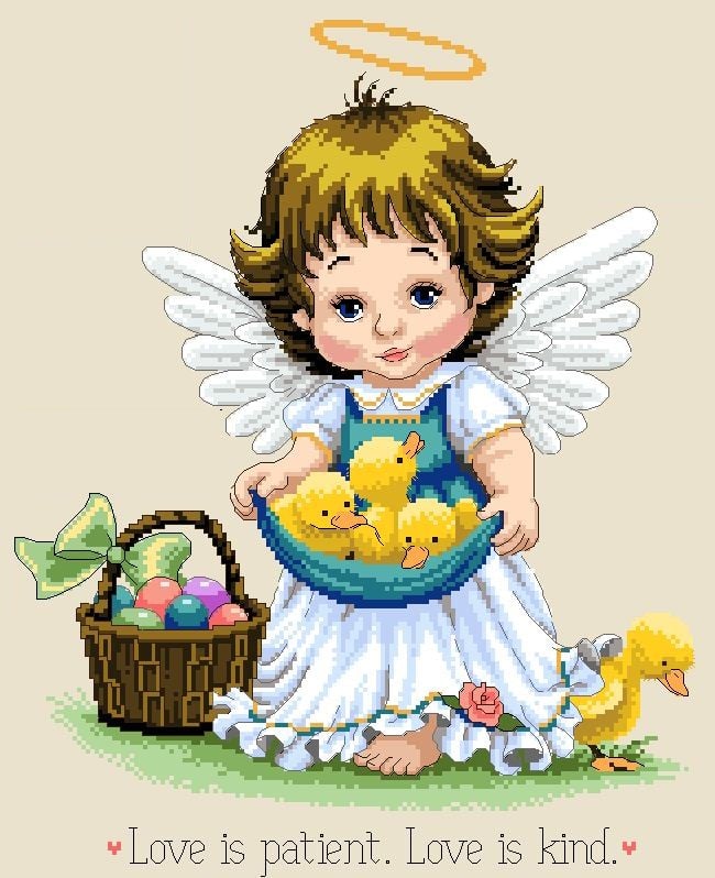 Angel Girl and Ducklings Sampler -Cross Stitch PDF Downloadable Patterm