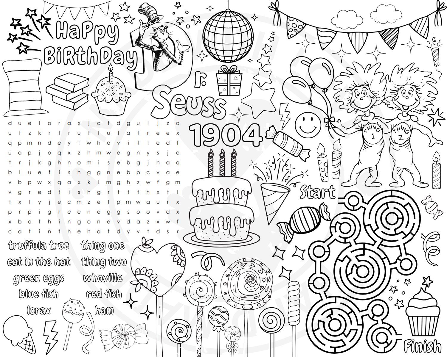 Dr. Seuss Happy Birthday Coloring Page - Coloring Activity