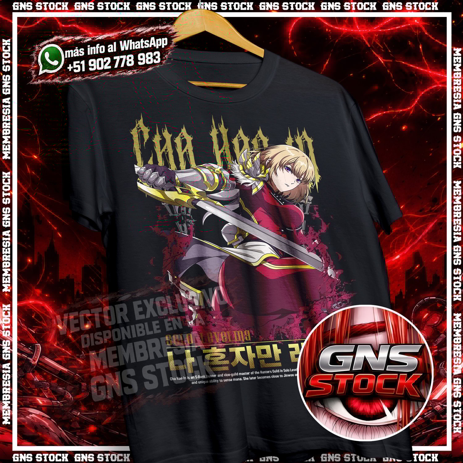 Vector de Anime – Cha Hae-In | Solo Leveling | Diseño para DTF, Sublimación, Camisetas