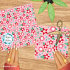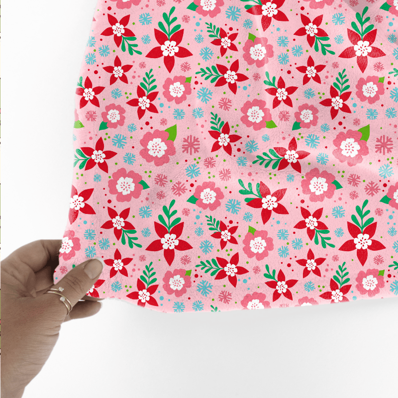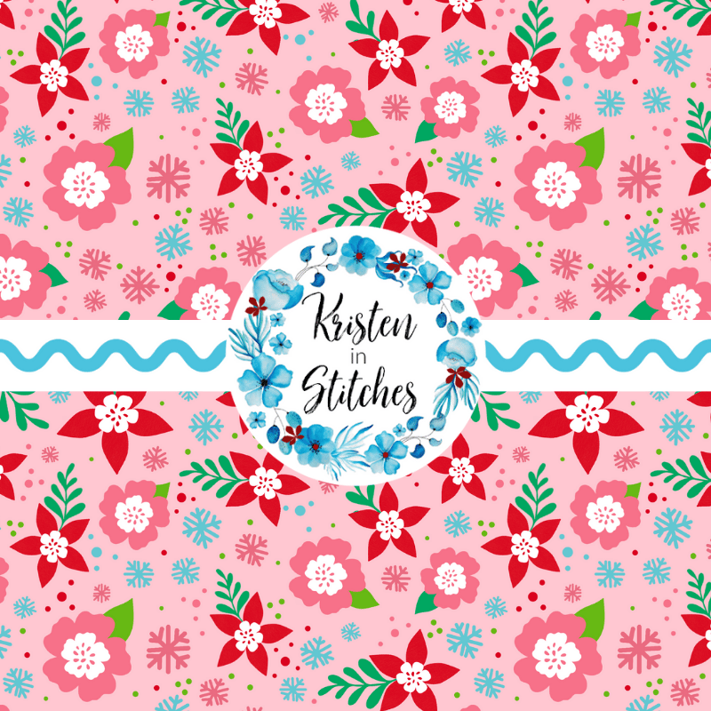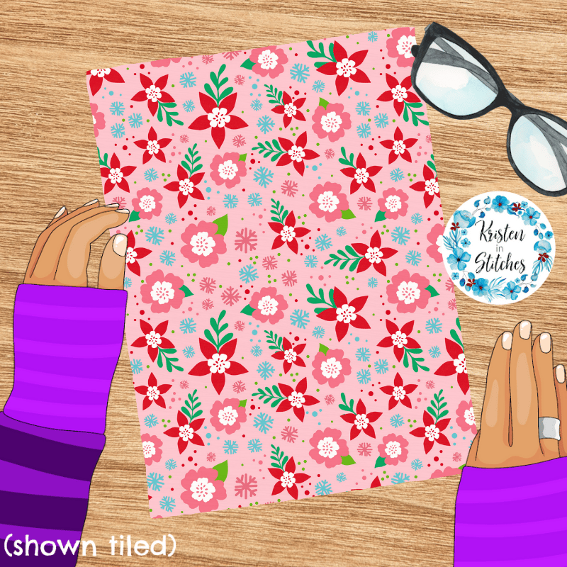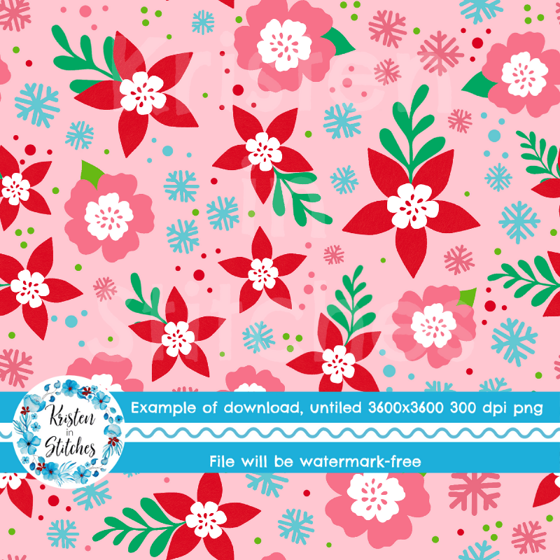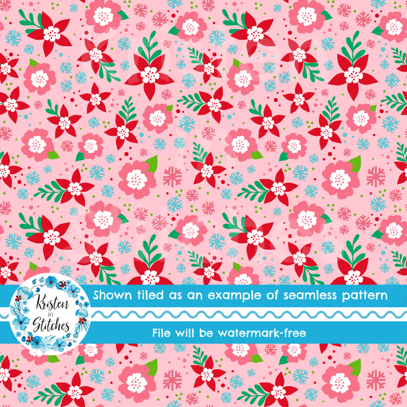 Festive Christmas Holiday Floral Seamless Pattern, Red and Pink Flowers, Pink