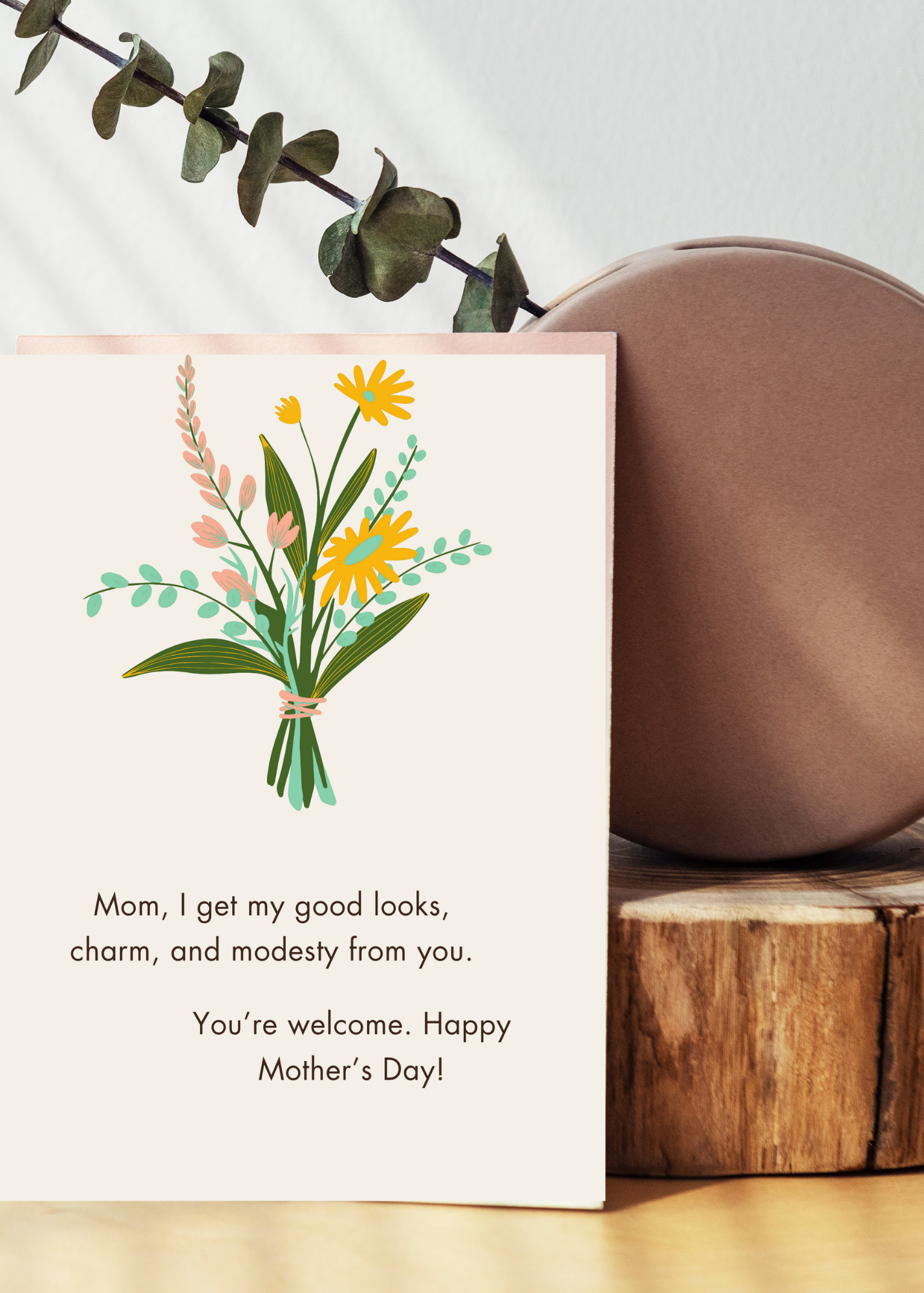 > "Mom, I get my good looks, charm, and modesty from you. You're welcome. Happy Mother's Day!"