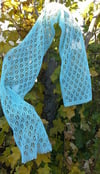 In Fool's Fate, the third book in Robin Hobb's Tawny Man series, Fitz and the Fool travel to the glacial island of Aslevjal where Prince Dutiful must slay the dragon, Icefyre. This scarf would wrap the Prince's challenger, the Narcheska Elliania, in lovely, lacy warmth.