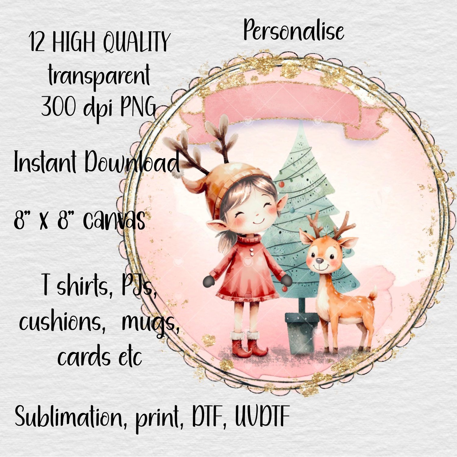 Cute Elf boy & girl Christmas design. 3 adorable boys, 3 adorable girls. 10 PNGs. Blonde, brunette, redhead. Sublimation, print, DTF, UVDTF. Created on a round for baubles, but could equally be used for any Christmas project.