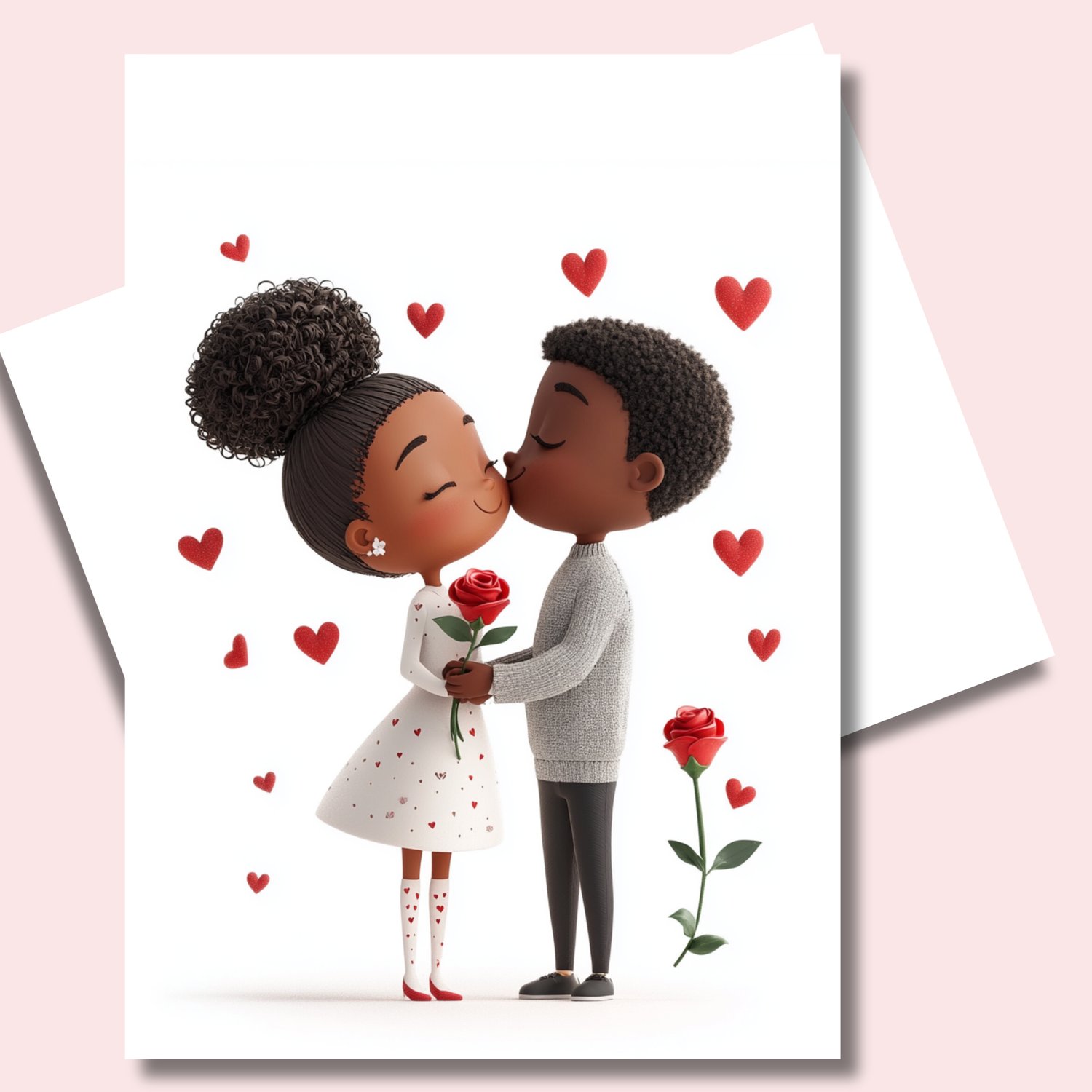 Smooches Valentines Day Card | Black Couple Greeting Card | Blank Inside | Black Girl Greeting Card