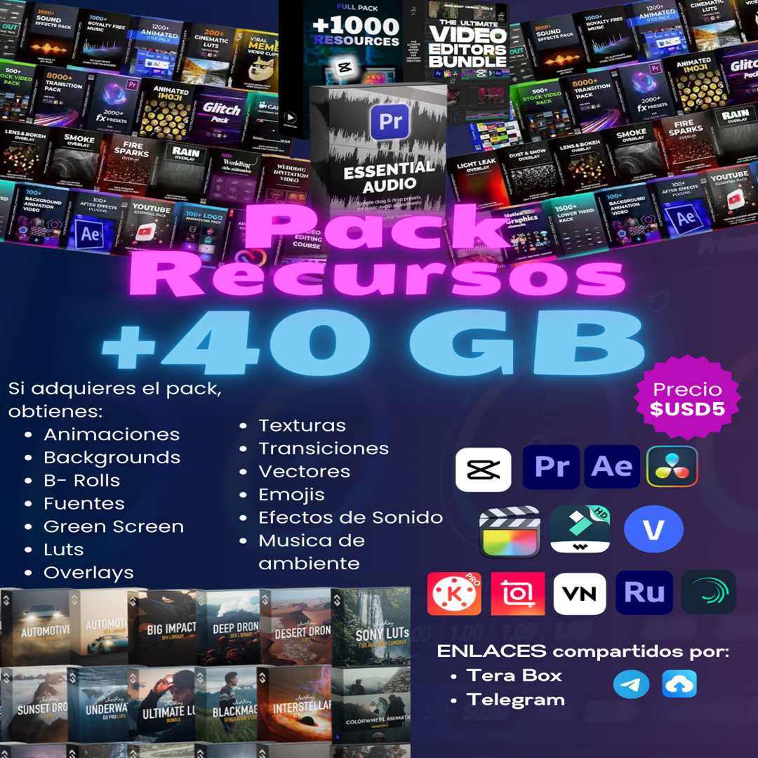 🎥 ¿Quieres llevar tus ediciones al siguiente nivel? Este pack de +40GB tiene TODO lo que necesitas para crear contenido PRO, sin importar si editas en PC o desde tu celular.