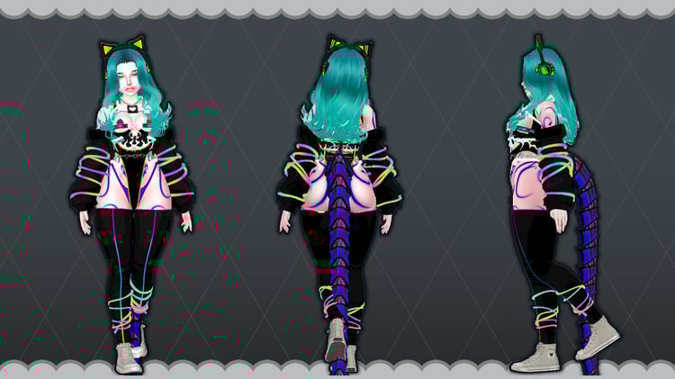 Zexi is a Alien & Cyber rave-themed avatar bursting with color, energy, and customization!
