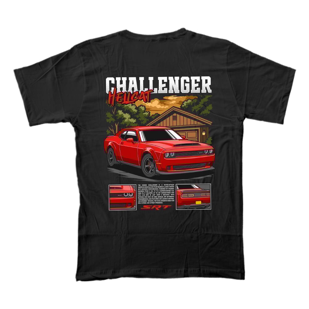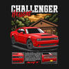 Retro-inspired 'Challenger Hellcat' design featuring bold, classic American muscle car aesthetics with a modern twist. The artwork highlights aggressive lines, iconic badging, and high-performance details, perfect for car enthusiasts and collectors. Ideal for posters, apparel, or digital use—ready to print or customize!