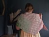 Lace and garter combined to make a stunning shawl that will keep you snug.