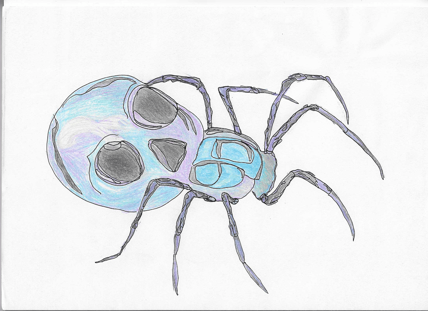 The eight legged spider in this picture has the top part of a skull for its abdomen. You can add your own designs to make it your own picture.