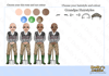four different skin tones, three eye colours and 3 hair colours)