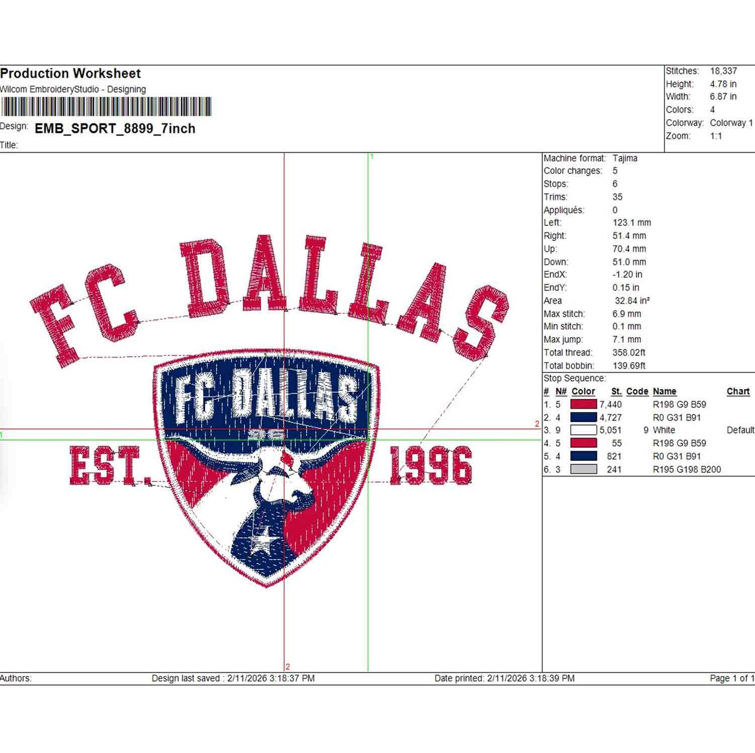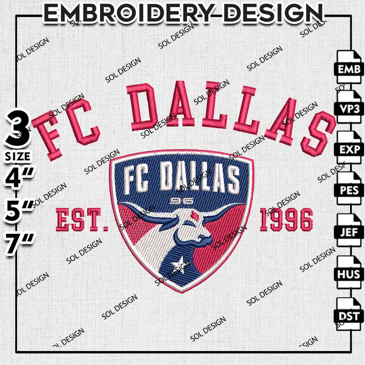 FC Dallas Est 1996 Logo Embroidery Designs, FC Dallas Embroidery Files, MLS FC Dallas Soccer Team Logo Embroidery, Major League Soccer Machine Embroidery Design, Digital Download