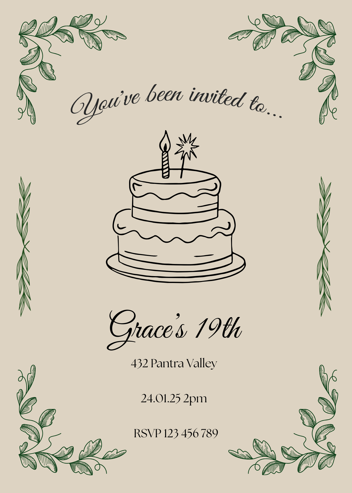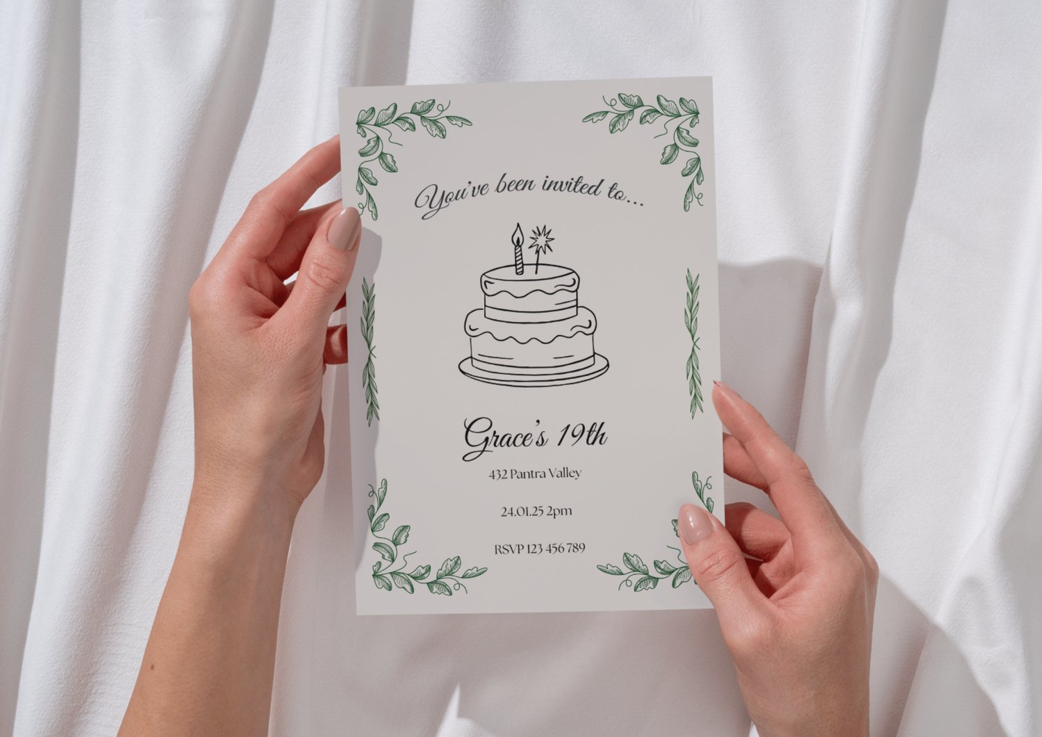 Bring a touch of nature’s elegance to your special day with this Subtle Leafy Birthday Invitation – a digital product designed to let your unique celebration shine! 🍃✨