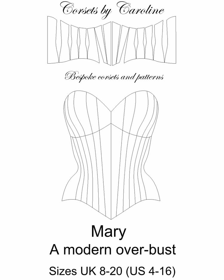 PATTERN! This is a 10-panelled over-bust (including bust gusset) pattern with a beautiful curve to accentuate your waist. Sizes (UK) 8 -20 (US 4 - 16). Approx. Cup sizes A-E. The design is a modern take on stays (without the tabs!) as it is slightly flattening of the bust and has slim straps. Includes 25 page manual of construction notes!