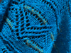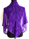 The first sample was knit with a single skein of Buffalo Wool Company Sexy (lace weight) in Royalty (approx 366m/400yds) and used approximately 700 size 8/0 beads for highlights and the bound off edge. Highlight beads were applied as they were worked. Beads for the bind off were prestrung.