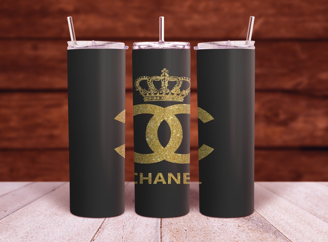 Coco Chanel Black & Giold Crown 20oz and 30oz Sublimation Tumbler Wrap PNG