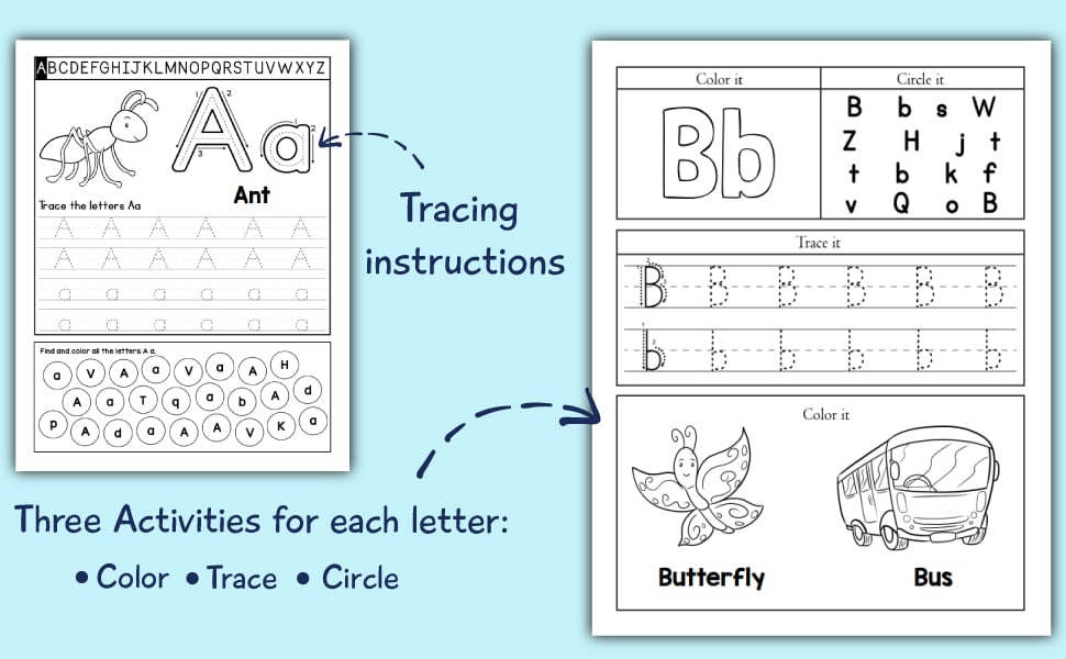 The A to Z Letter Tracing Workbook comes with a clear step-by-step guide, so you can help your kids start a rewarding, fun, and educational journey where they can learn the right way to trace, write, and read all the letters from A to Z.