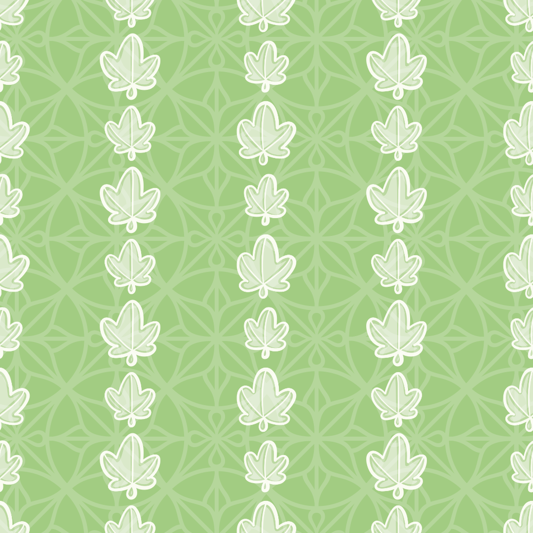 Cartoon leaf column seamless illustration pattern. Doodle greenery wallpaper background.