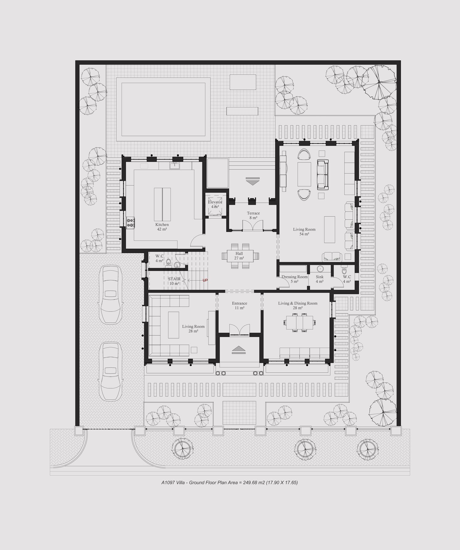 - This villa contains two floors with a roof, with an approximate area of (470 sqm)