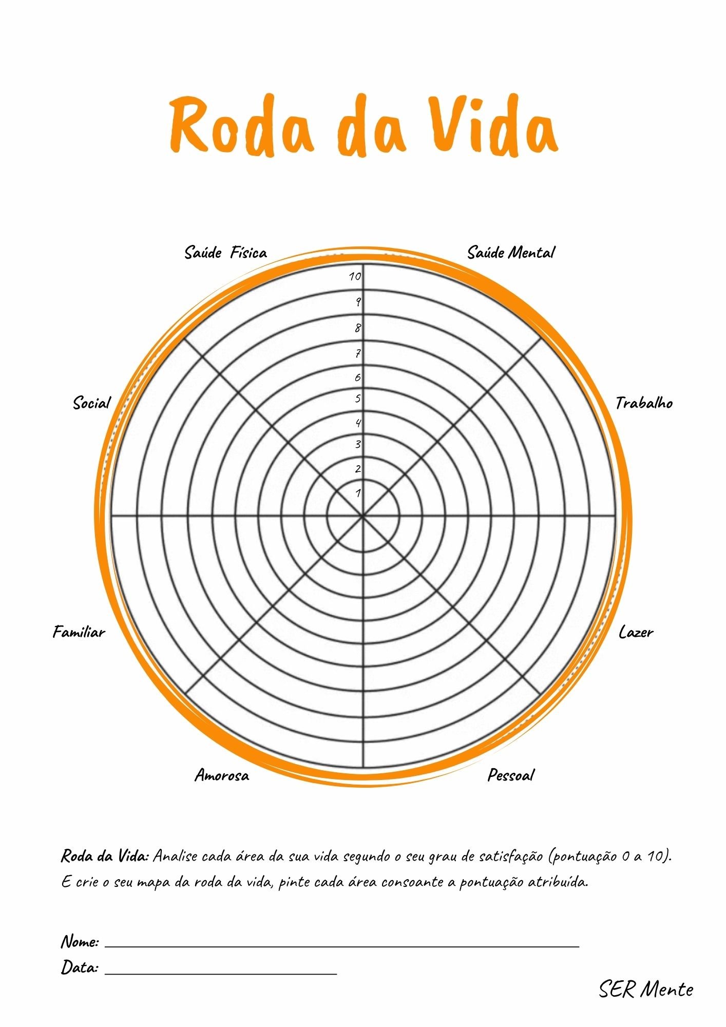 Roda da Vida é um instrumento de avaliação pessoal, que promove a analise mensal das diversas áreas da sua vida. Promove a tomada de consciência e os aspetos que deve trabalhar e melhorar para alcançar maior satisfação e qualidade de vida.