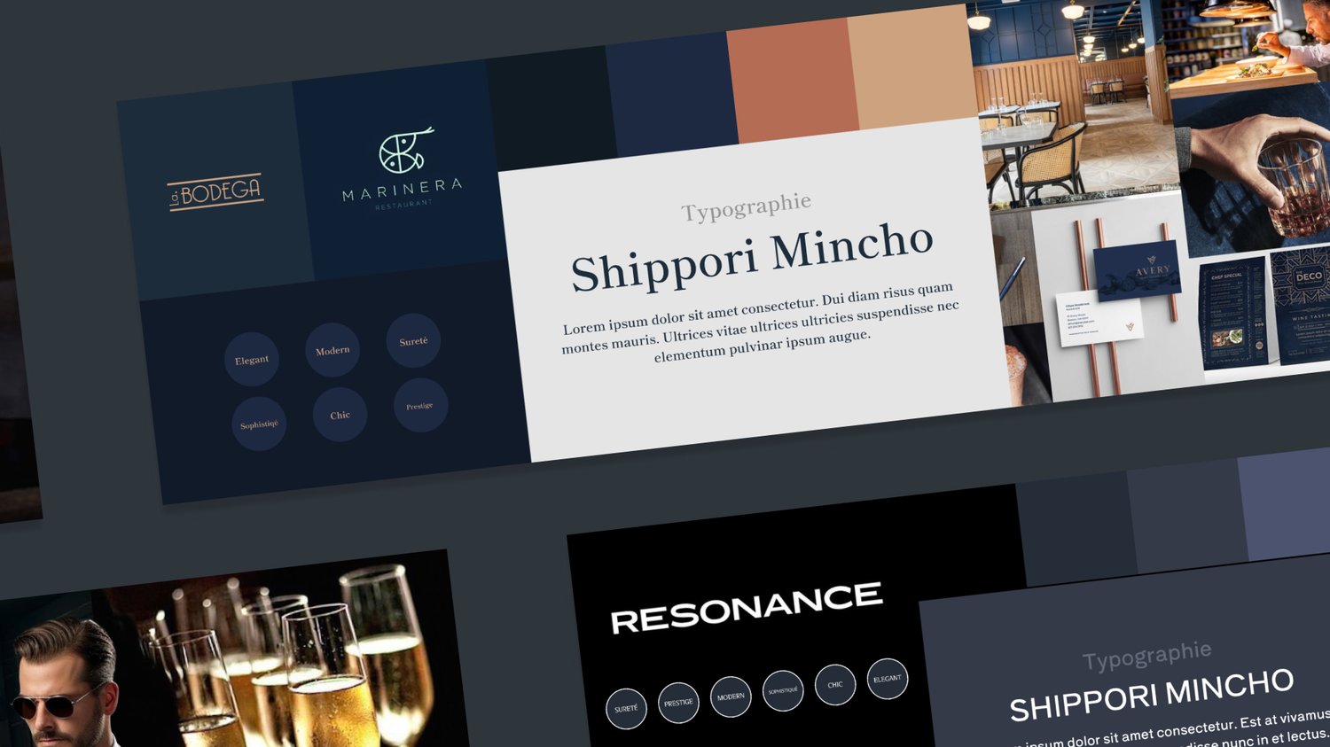 Un Stylescape est un collage visuel méticuleusement organisé qui sert de pont entre la phase de conception initiale et la phase de design détaillé. Contrairement aux moodboards traditionnels qui se concentrent principalement sur l'inspiration, les Stylescapes intègrent des éléments de branding, des palettes de couleurs, des typographies, des textures, et des exemples de mise en page. Ils sont conçus pour capturer l'essence d'un projet de manière plus complète et stratégique.